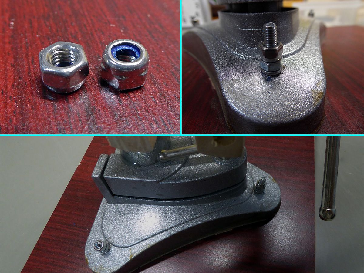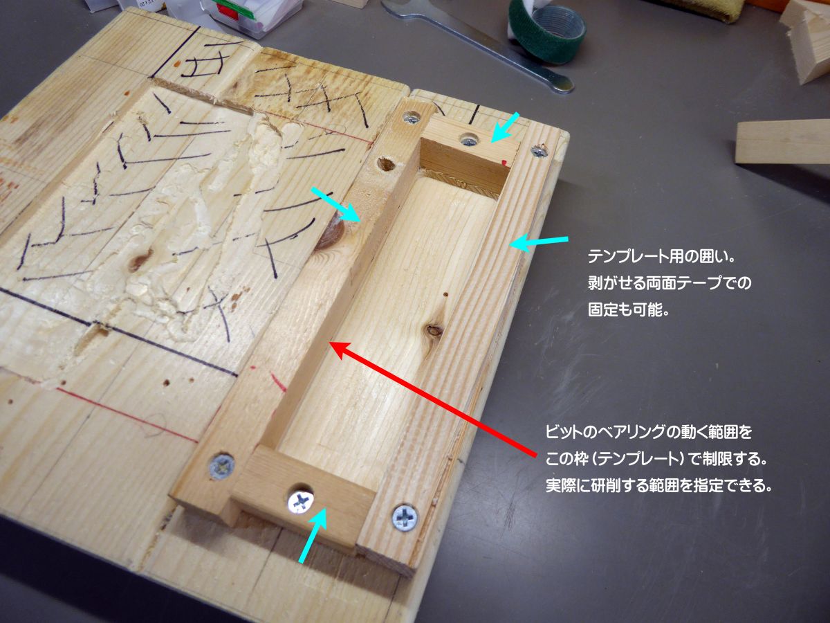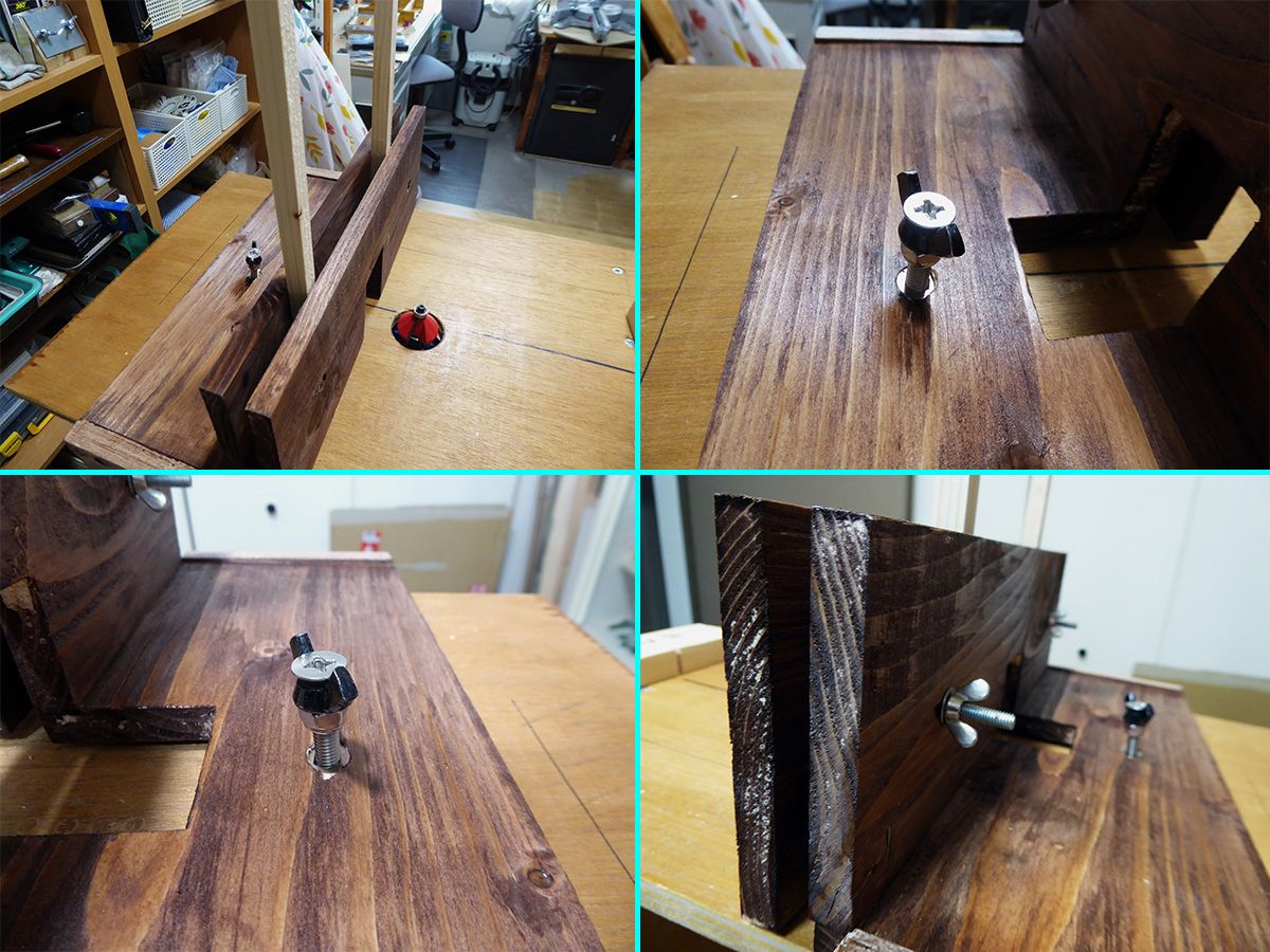 治具をトリマー台に固定するネジ取り付け部分が、木材の材質が弱くネジの圧力に耐えられませんでした。