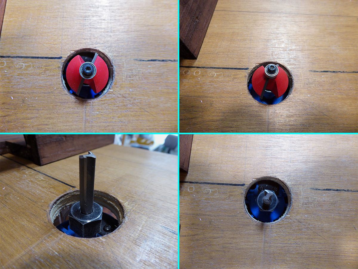 トリマービットについては、トリマー固定用のプラスチックケースの位置が悪くて、ビットが円の中心よりも偏心していました。