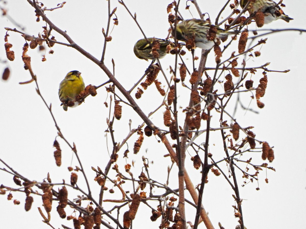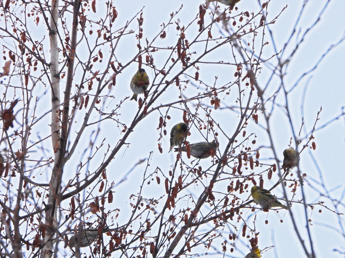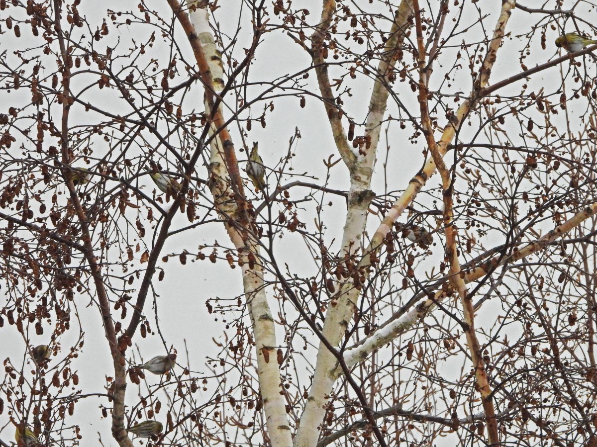 久しぶりに、マヒワの大きな群れが訪れていました。(写真4〜9)