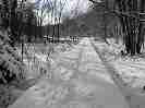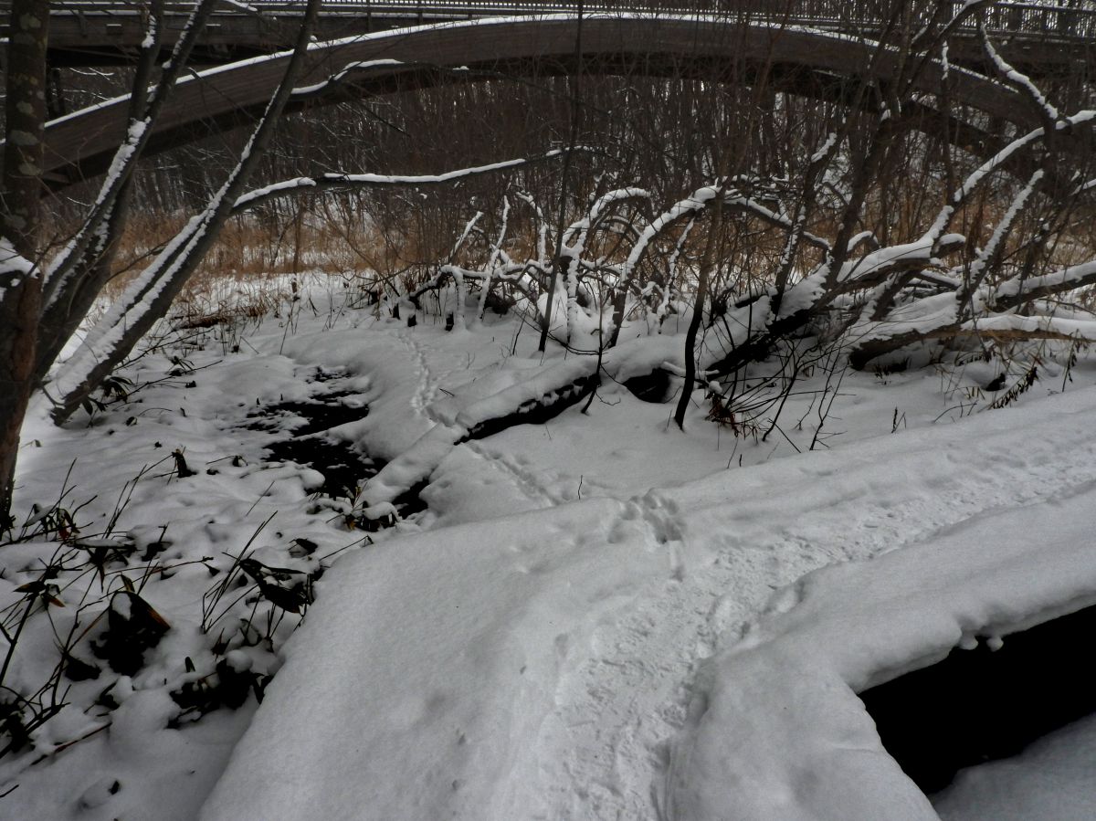 正面奥に向かっている踏み跡がキタキツネの