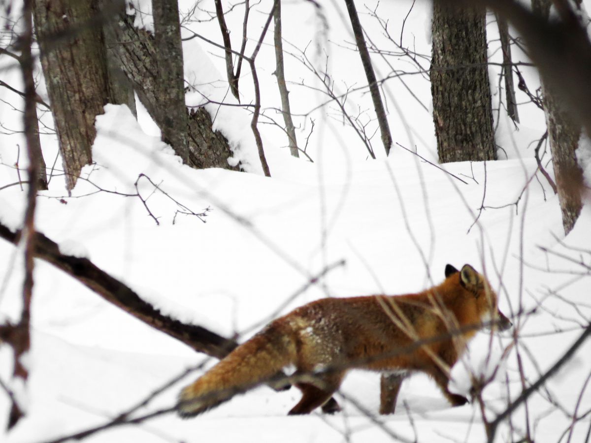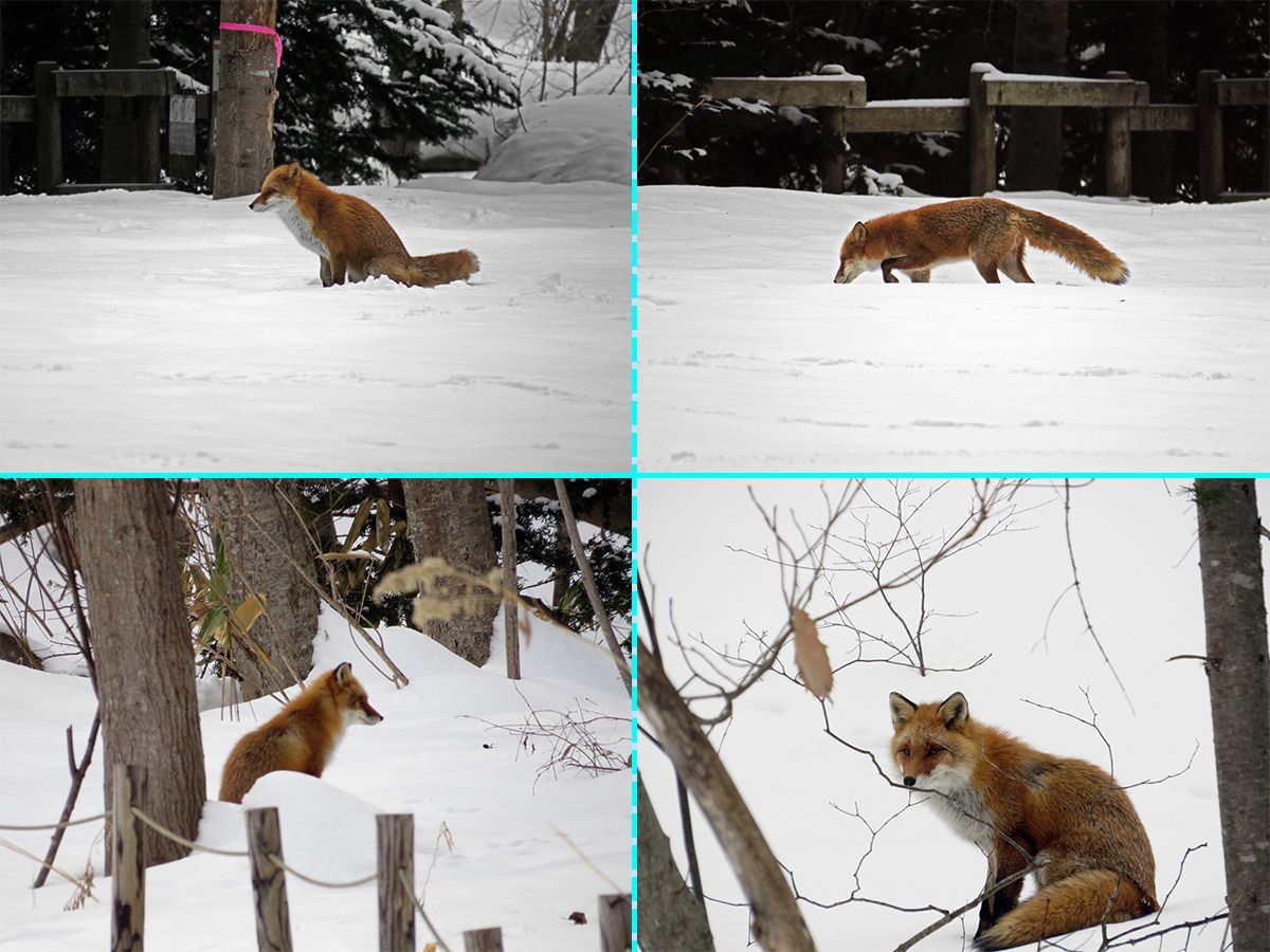 キタキツネは、この積雪の下から食料を探す必要がありますが、キタキツネはたくましいですね。