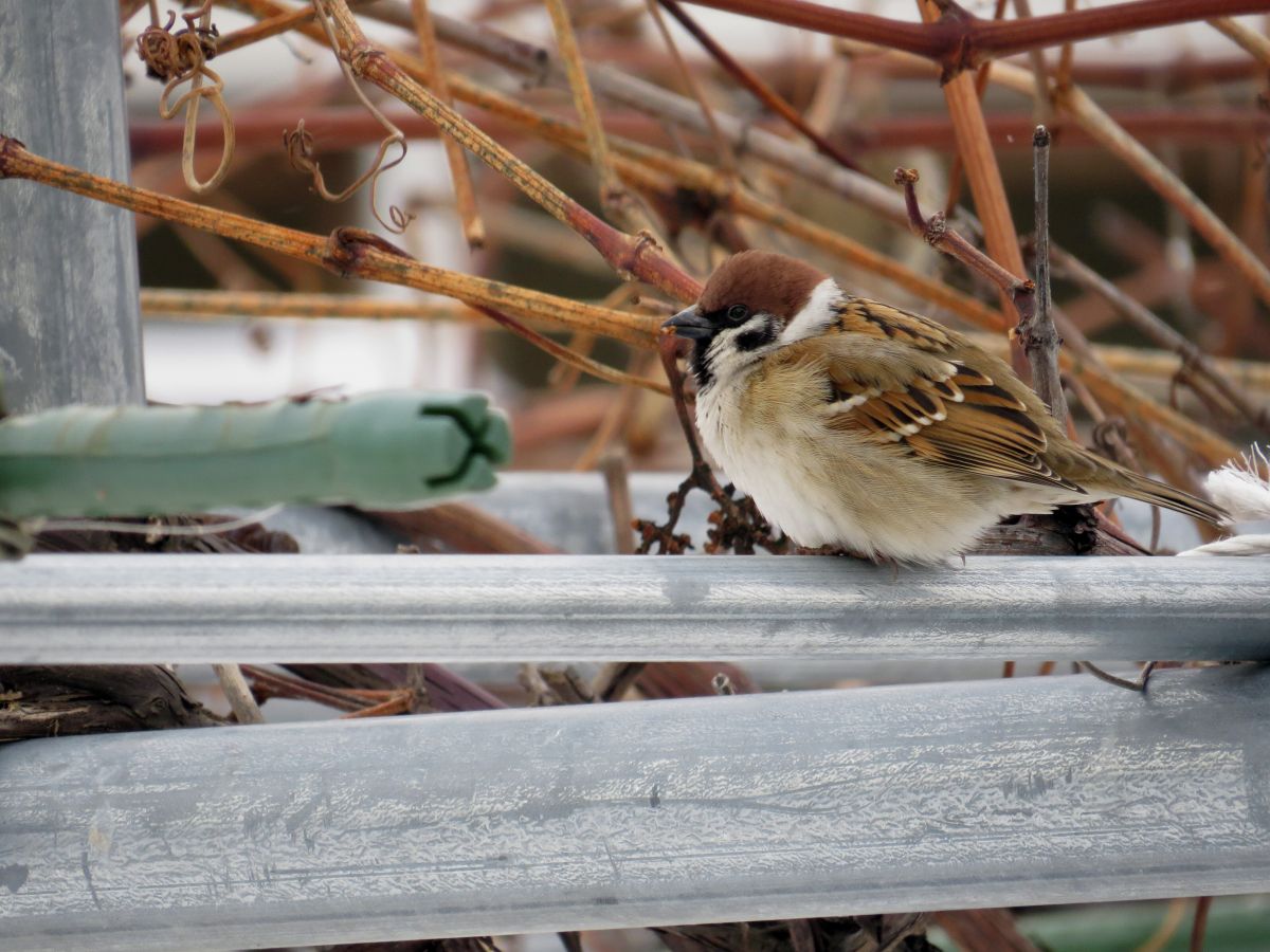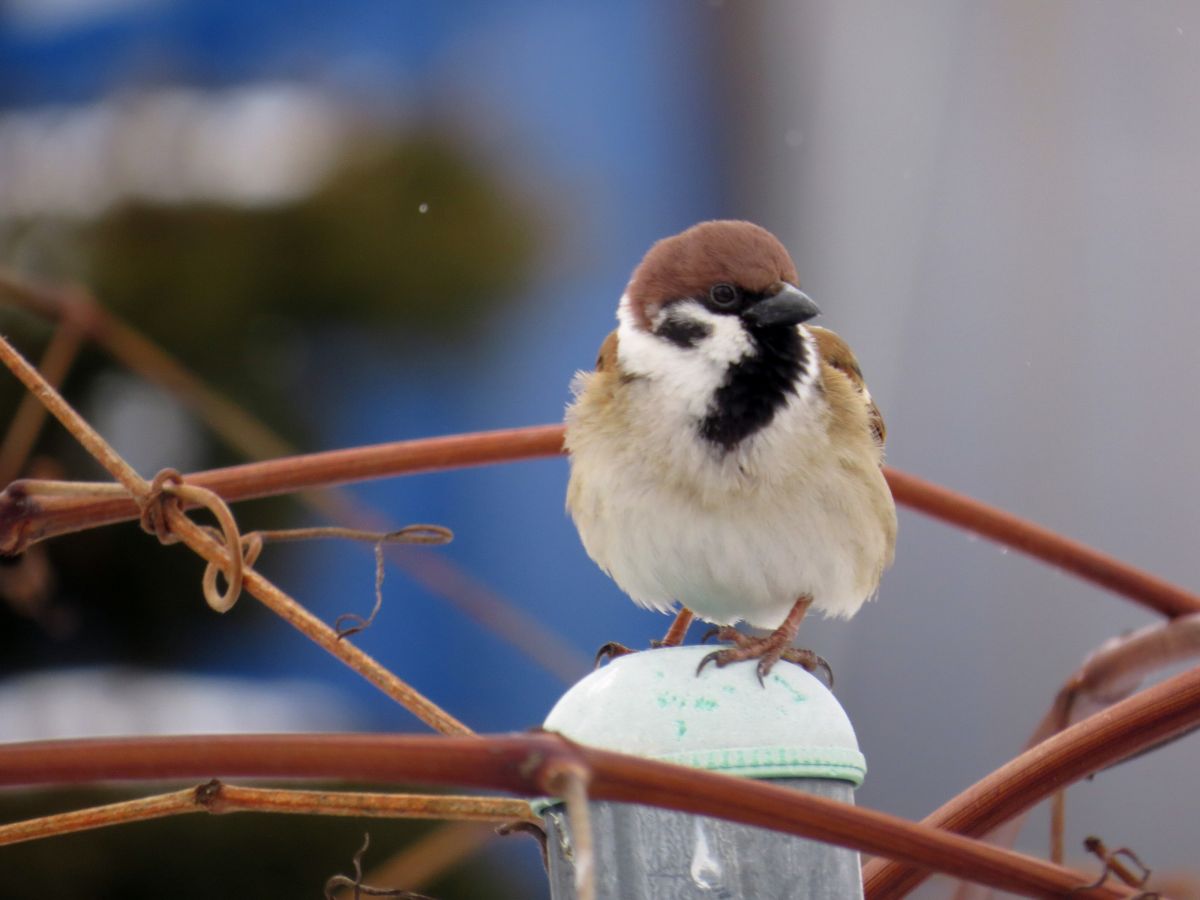野鳥が少なくて寂しいので、駐車場に戻るときに、ショッピングモール近くの民家の庭でスズメを撮影しました。(写真6〜9)