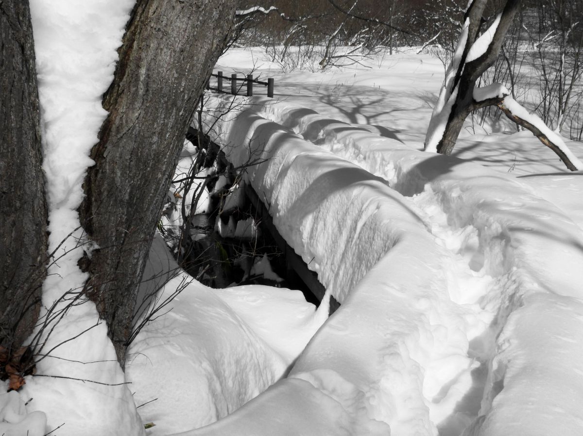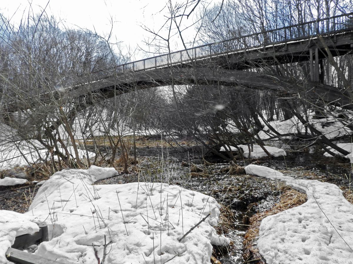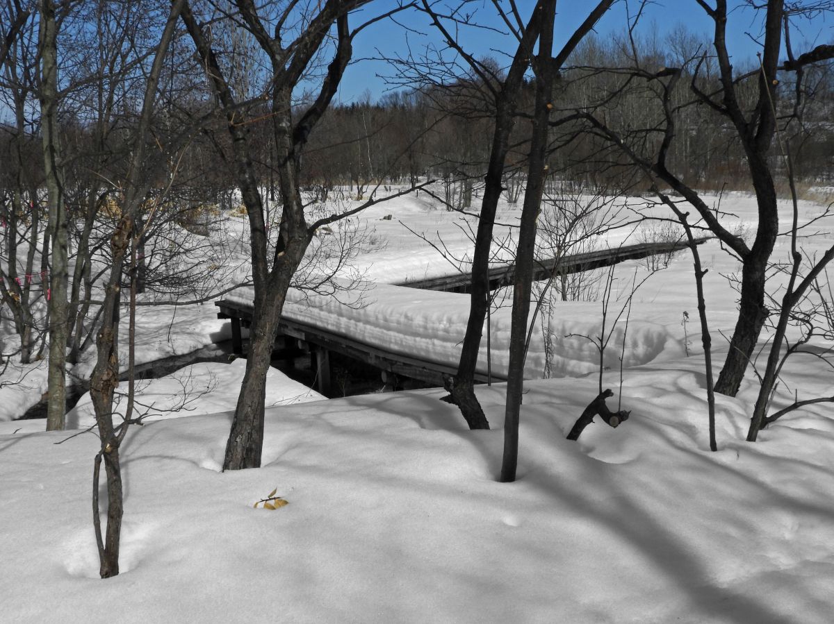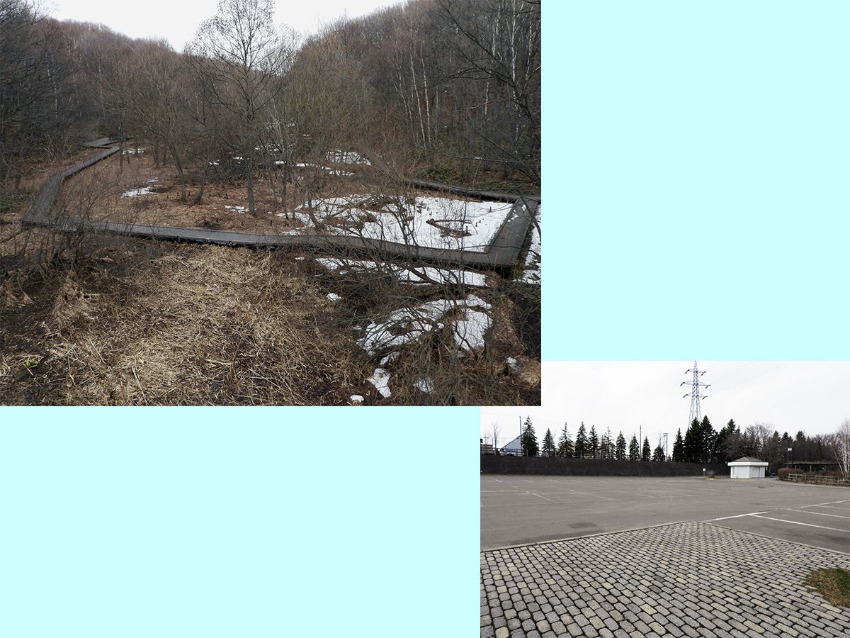 人工池と隣接した湿原の木道は、ほぼ雪解けが完了しました。(写真2)