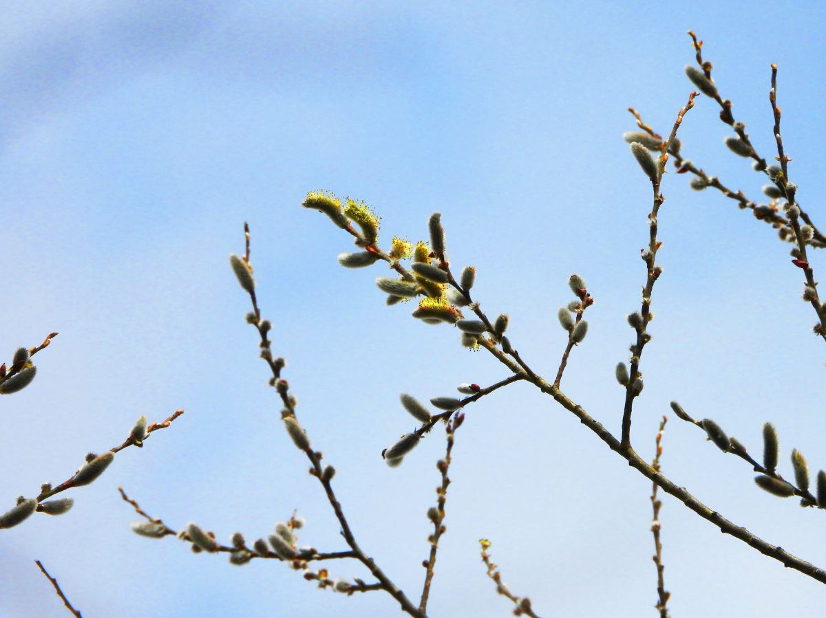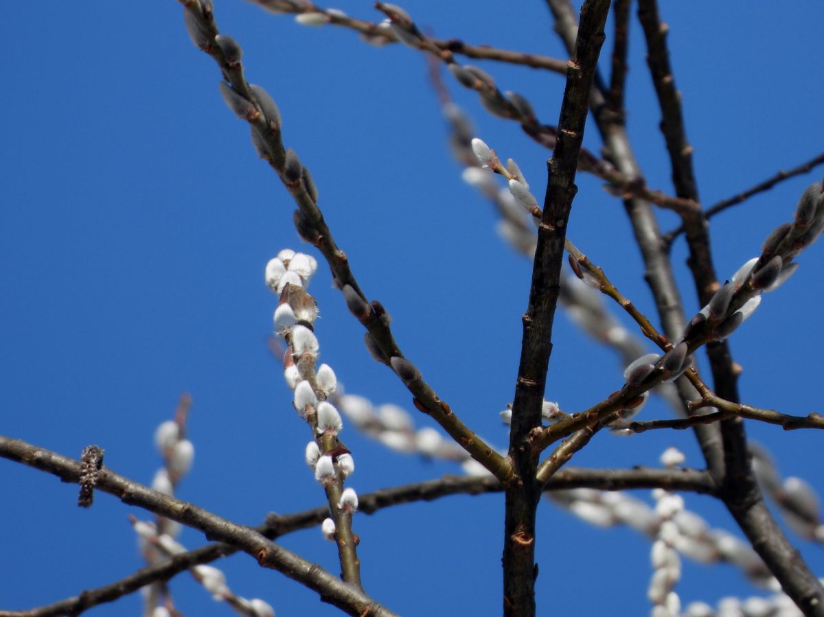 冬の間銀色に光っていた柳の芽に変化が現れています。(写真9)