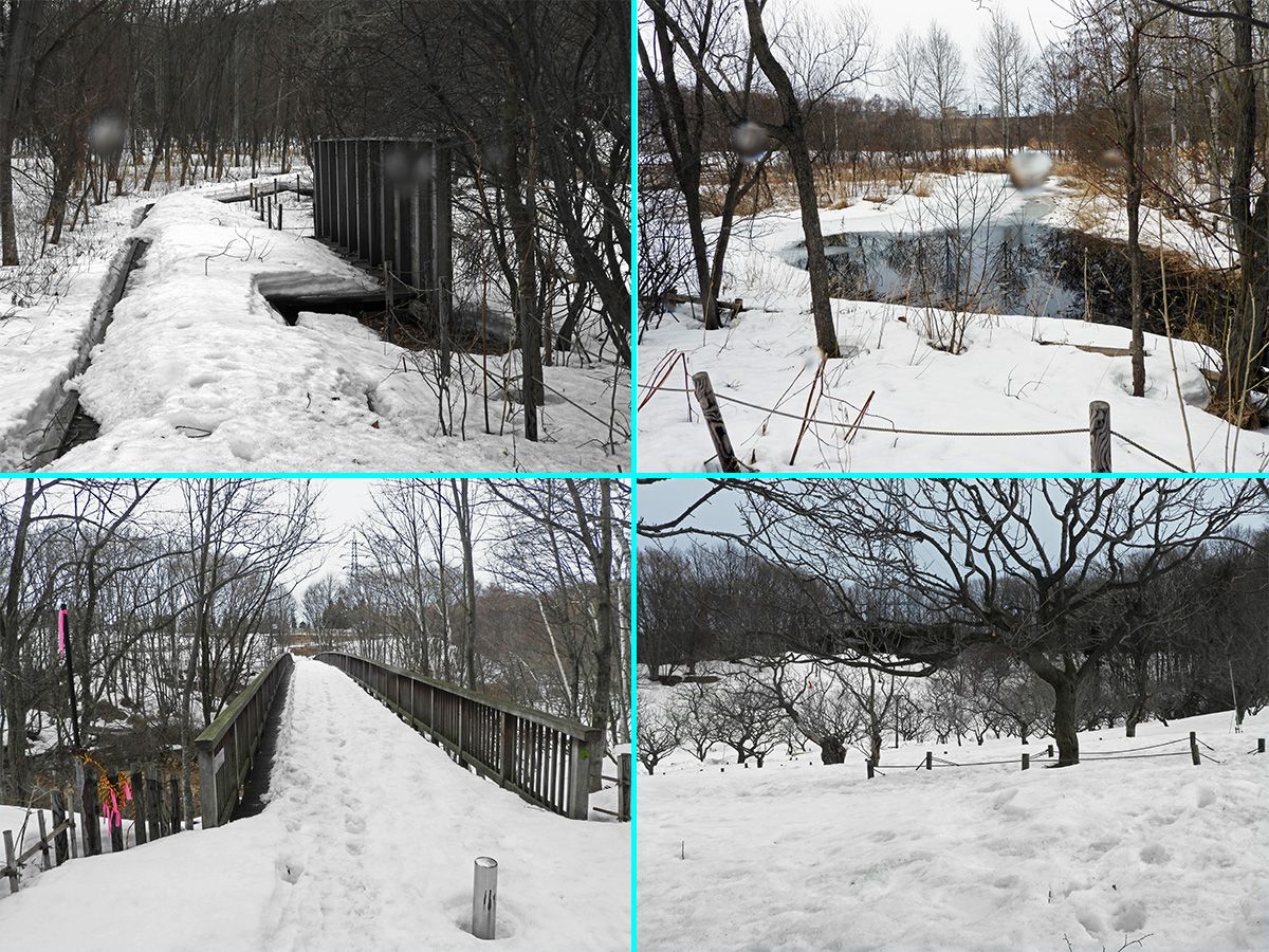 平岡公園の雪解けが急速に進んでいます。(写真7〜9)