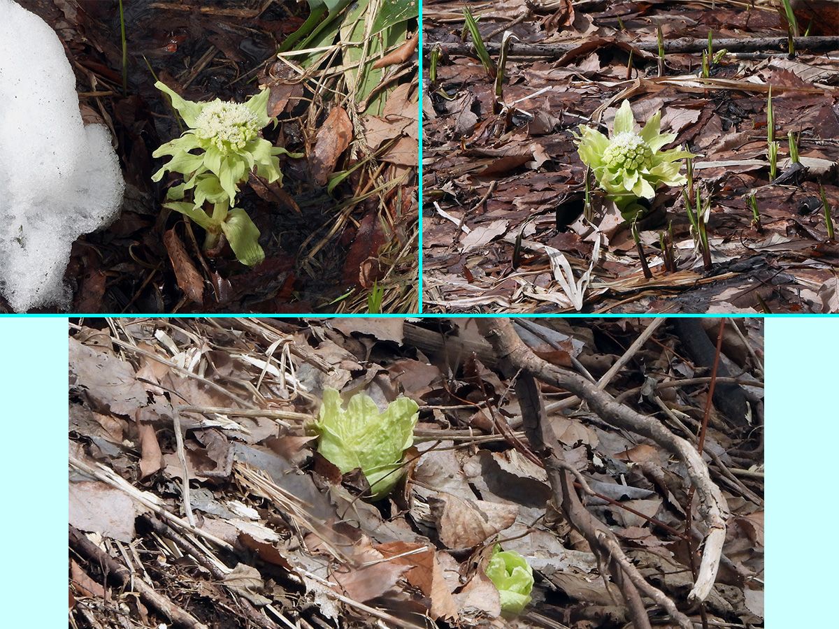 陽当たりの良い場所では、フキノトウが生長を始めました。(写真5,9)