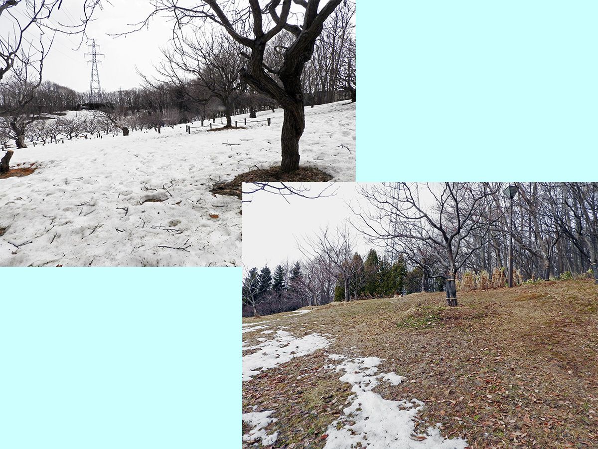 平地では、全体の90%程度は地面がでており、残りの10%程度に雪が残っています。