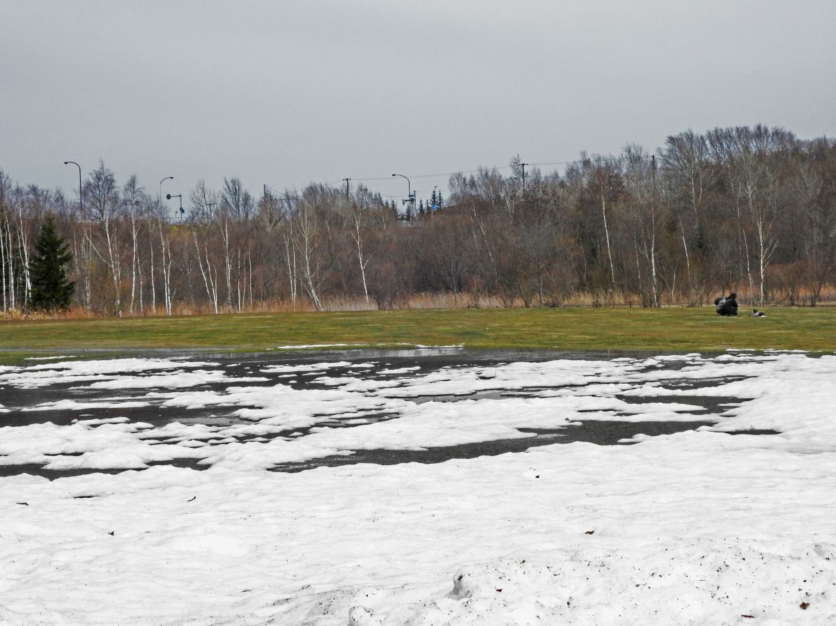この高い気温のため、平岡公園の雪解けが急速に進んでいます。