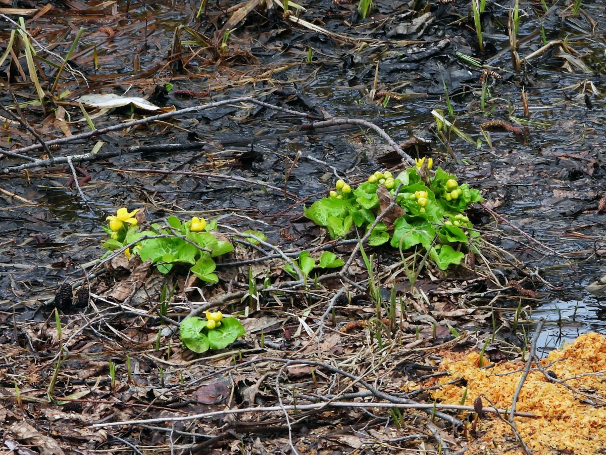 隣接する湿原では、エゾノリュウキンカが咲いています。(写真8)