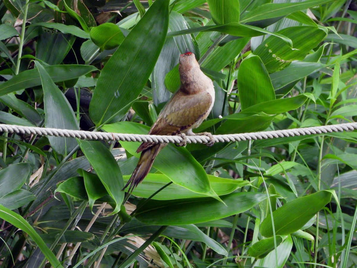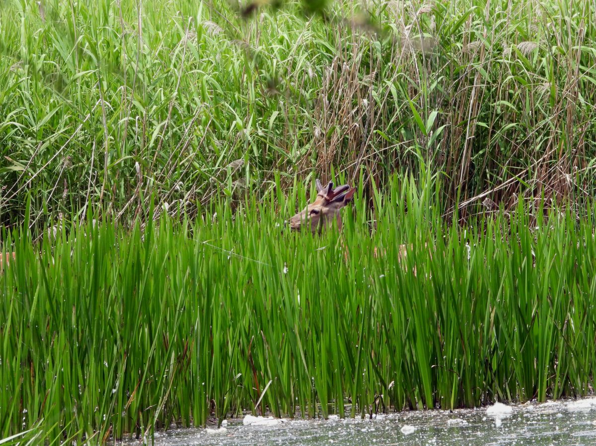 人工池で撮影中に、芦の中に見なれない物が見えました。