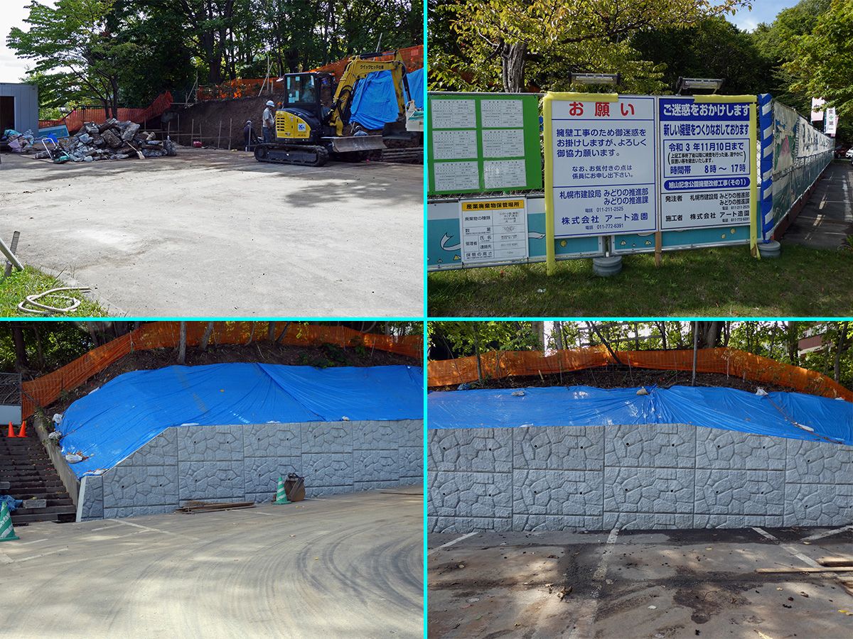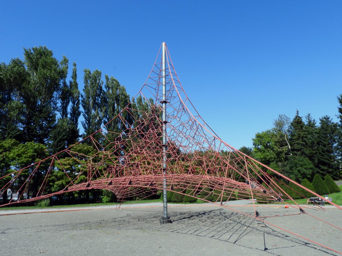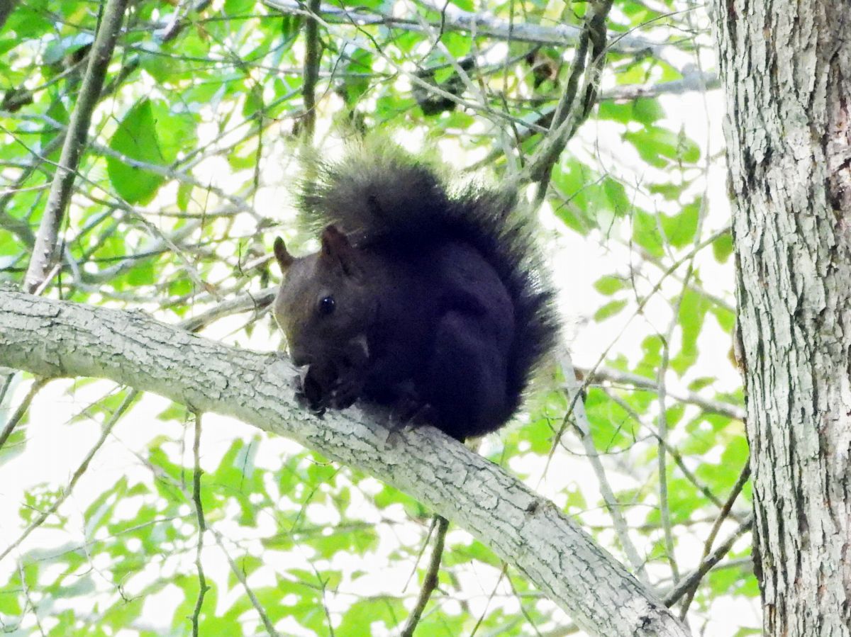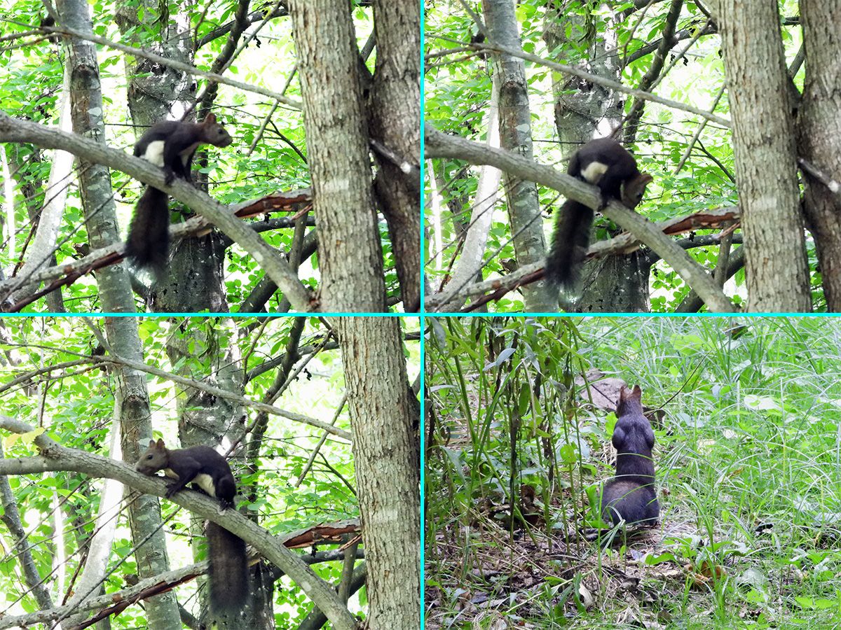 広場の遊歩道を歩いているときに、遊歩道を走って横断するエゾリスを見かけました。