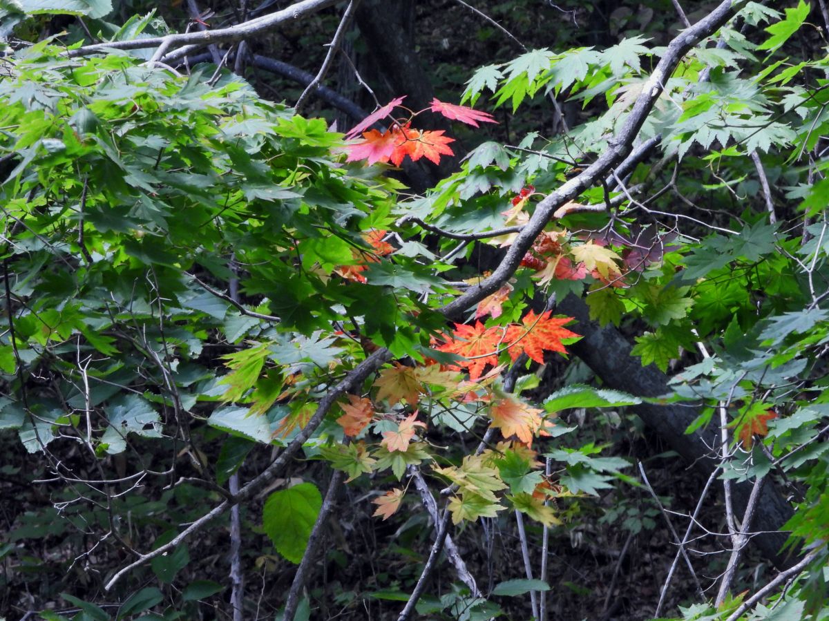 公園内の紅葉は、部分的に始まっている所もありますが、全体的には緑の葉の勢いが無くなってきた段階です。
