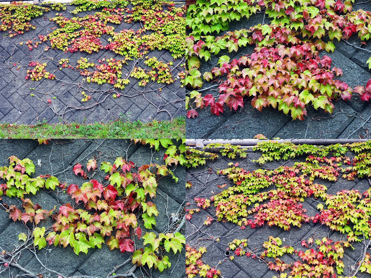 第一駐車場の石垣のツタ類が紅葉して、見頃を迎えました。