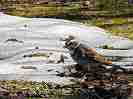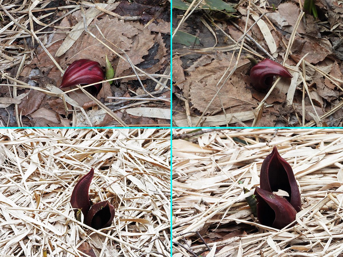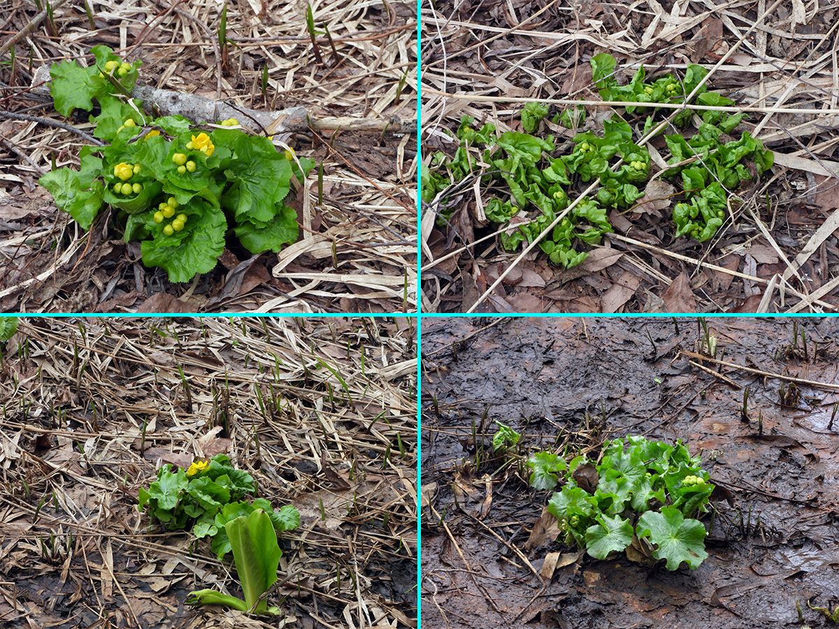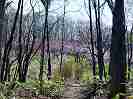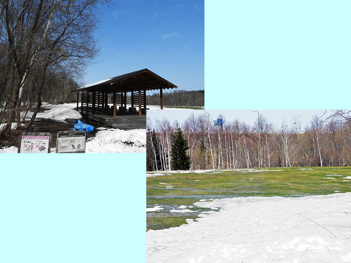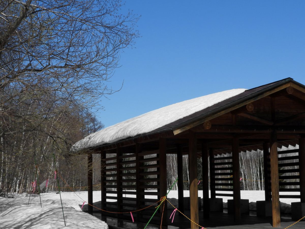 ただし、林のなかの木々は、梢部分が薄らと緑色になってきた程度で、湿原の木々とは葉の生長が大幅に遅れています。