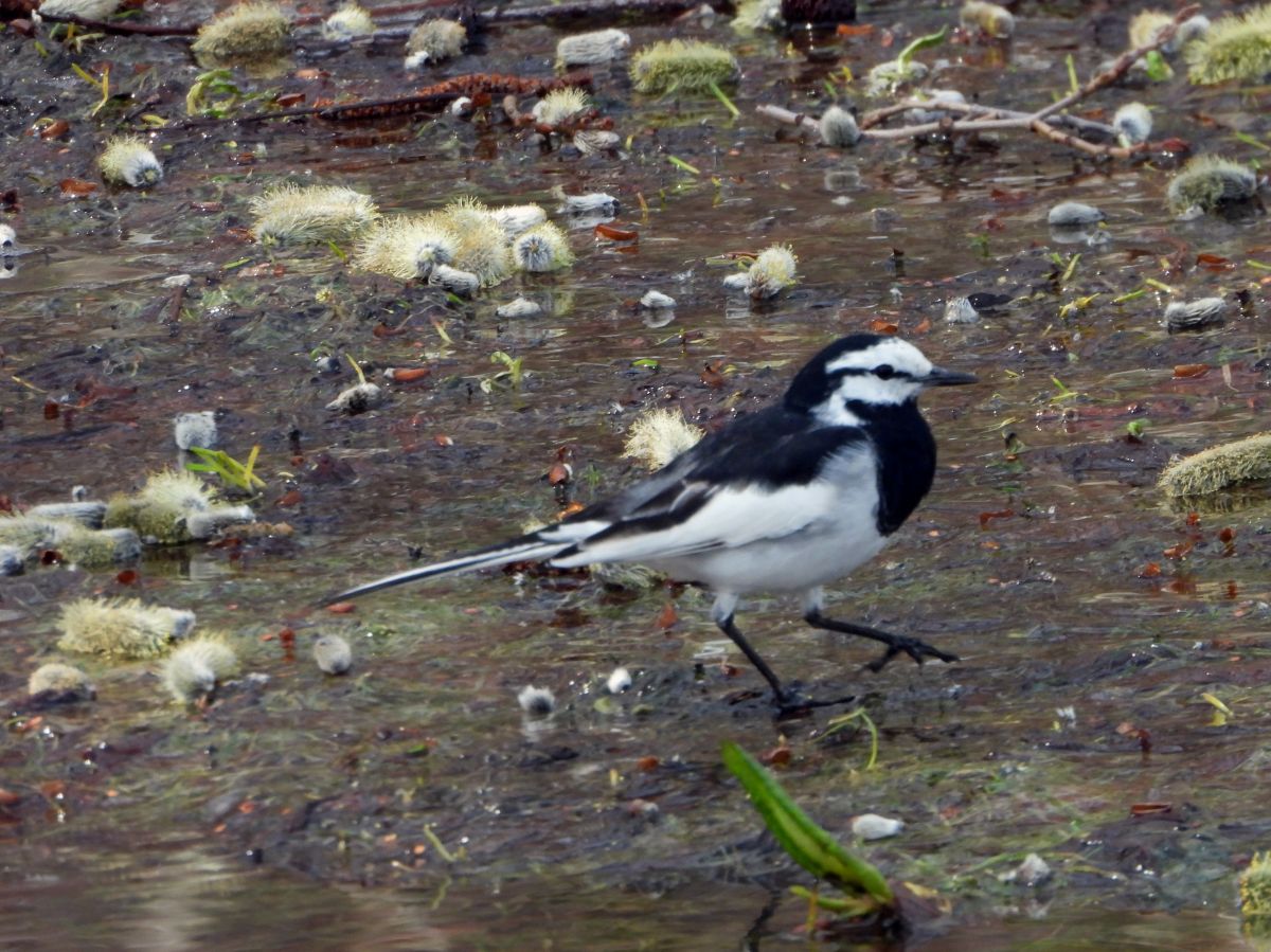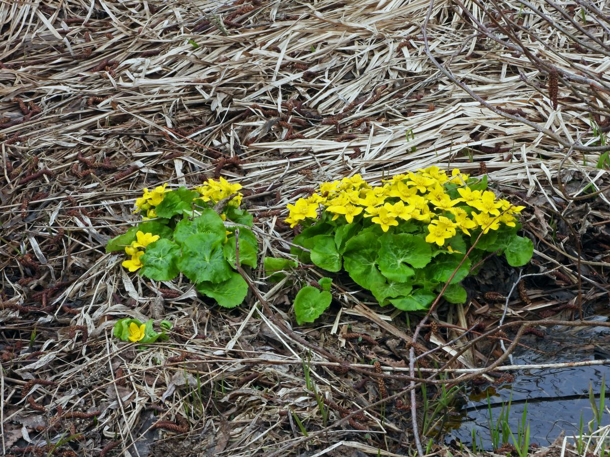 人工池の中島はまだ枯れ草に覆われていて、緑色はまだ見られません。