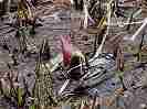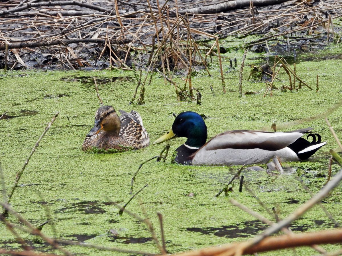 第1駐車場下の湿原にもマガモのつがいが採餌をして
