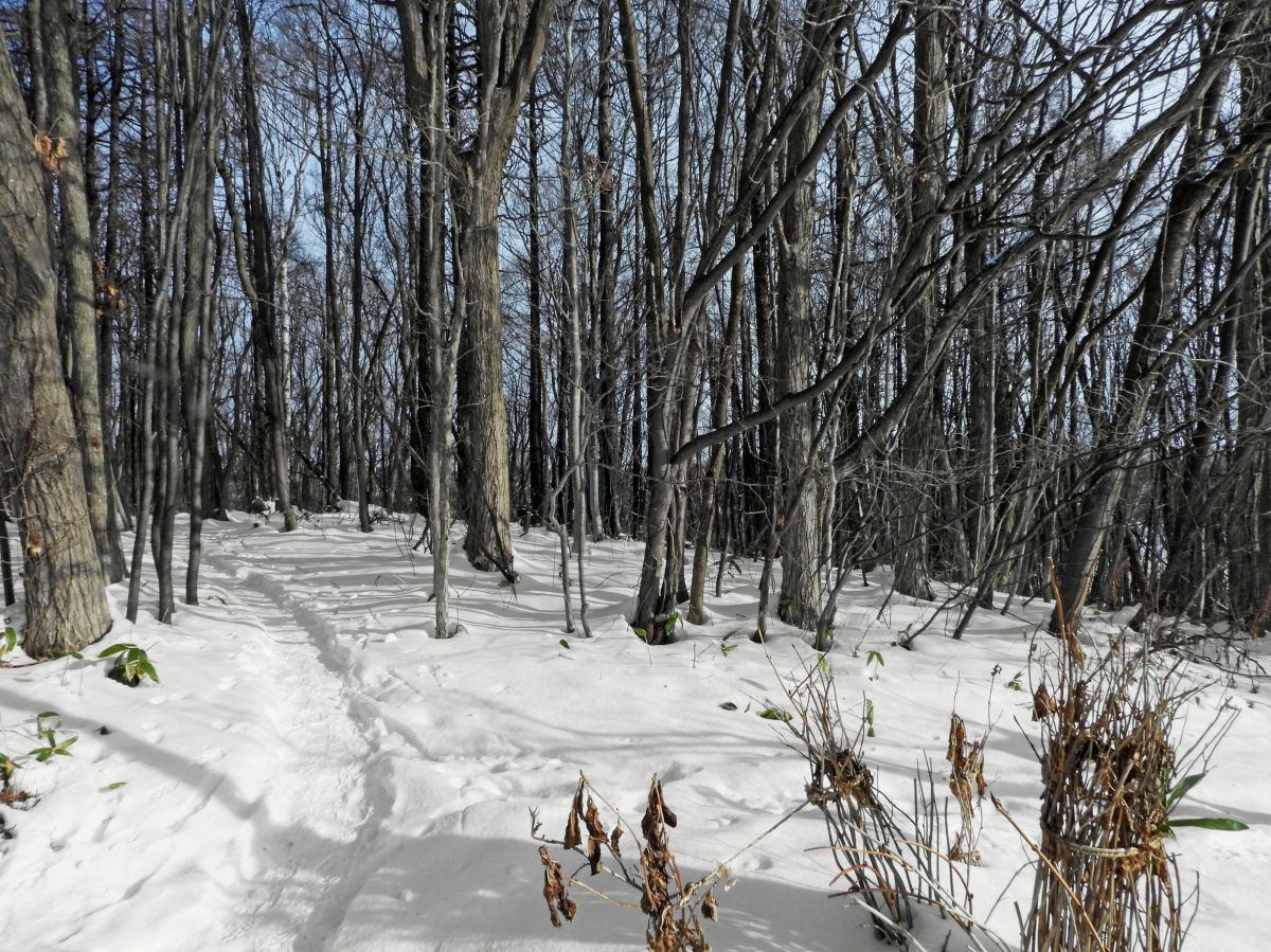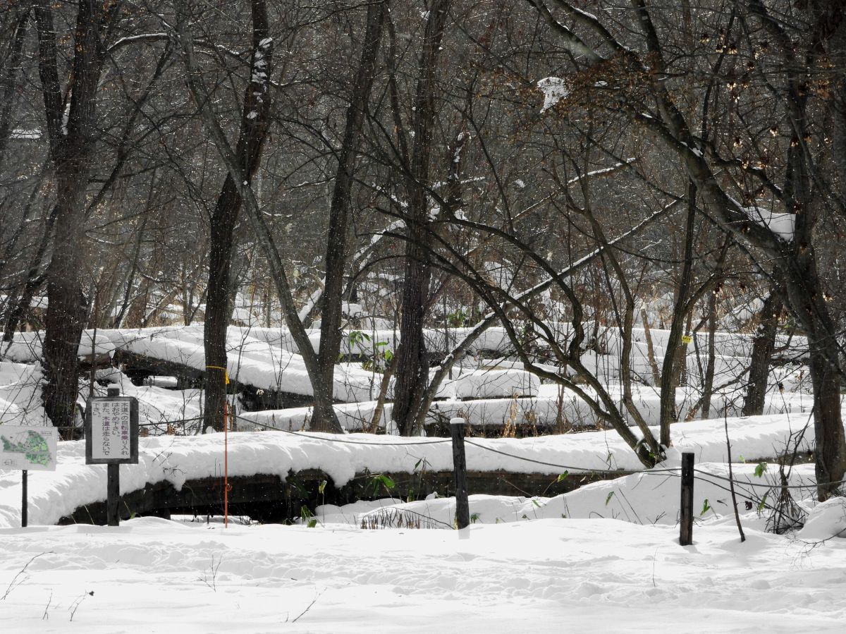 湿原に降りるためにいつも利用している第一駐車場に併設された遊歩道は、前回までの踏み跡が消えて跡がわかる程度になっていました。