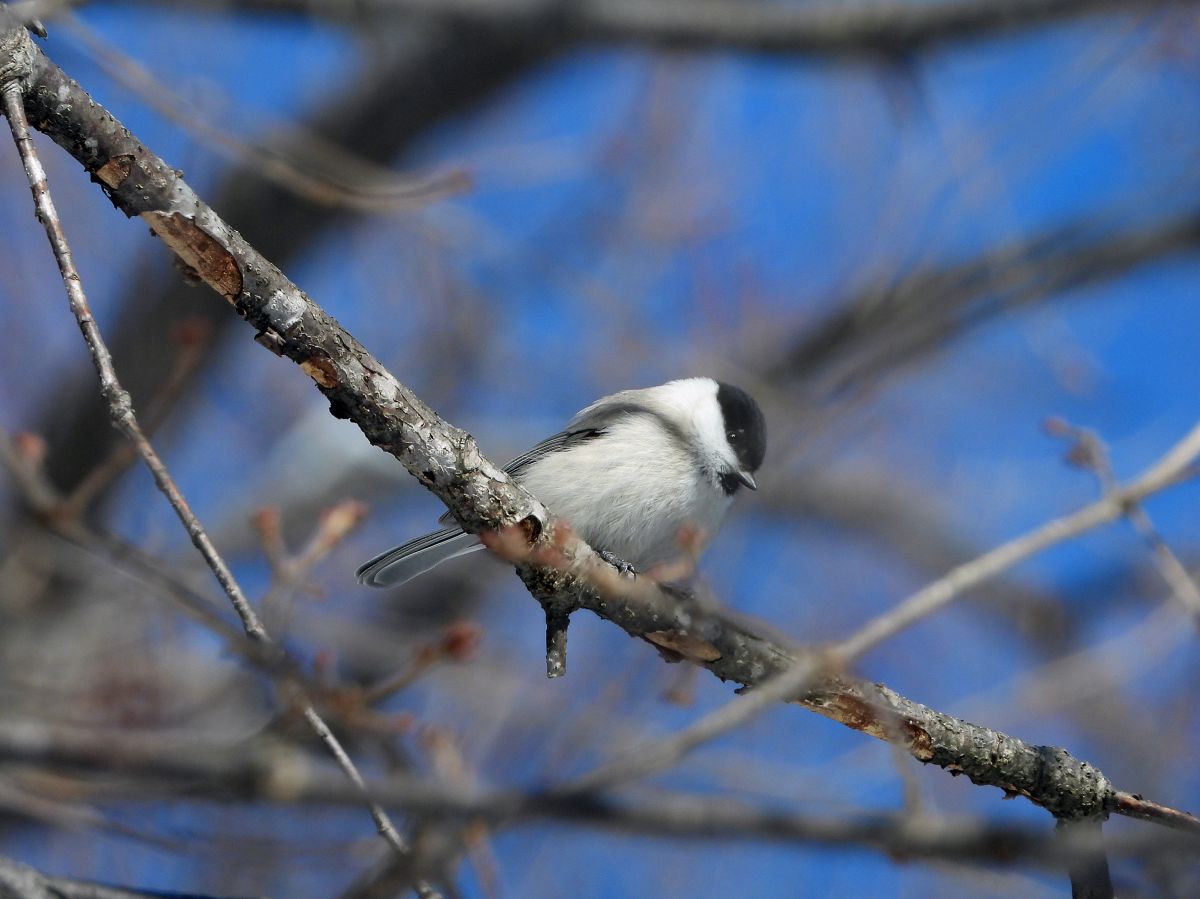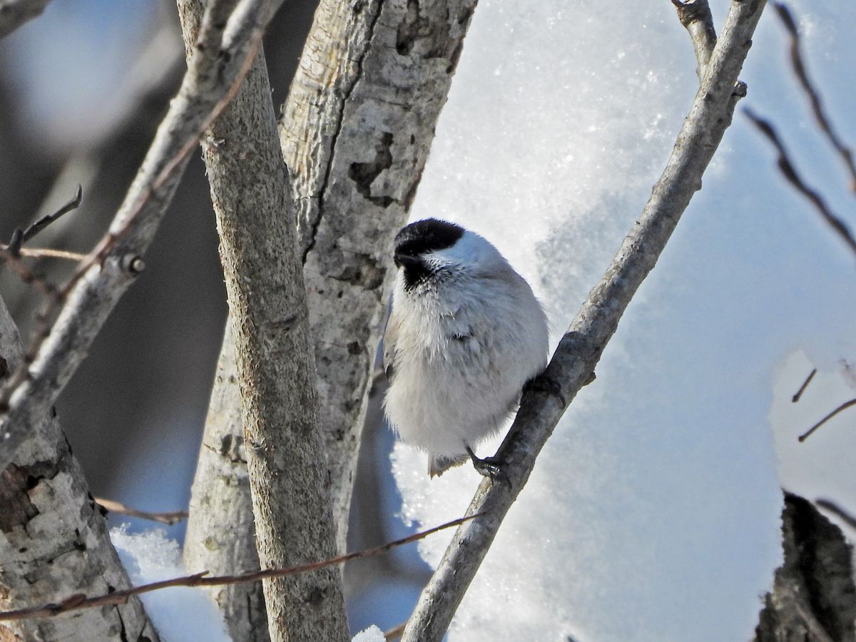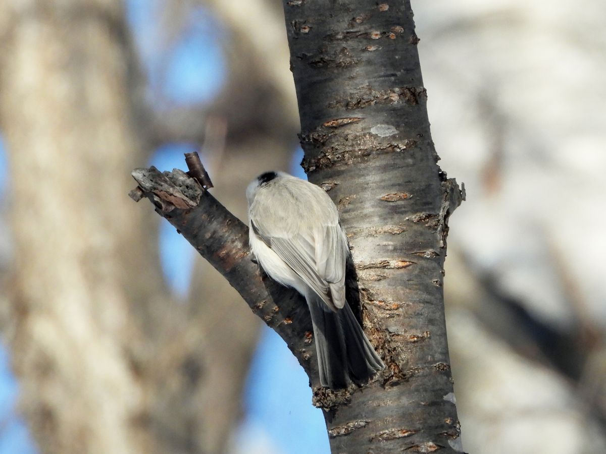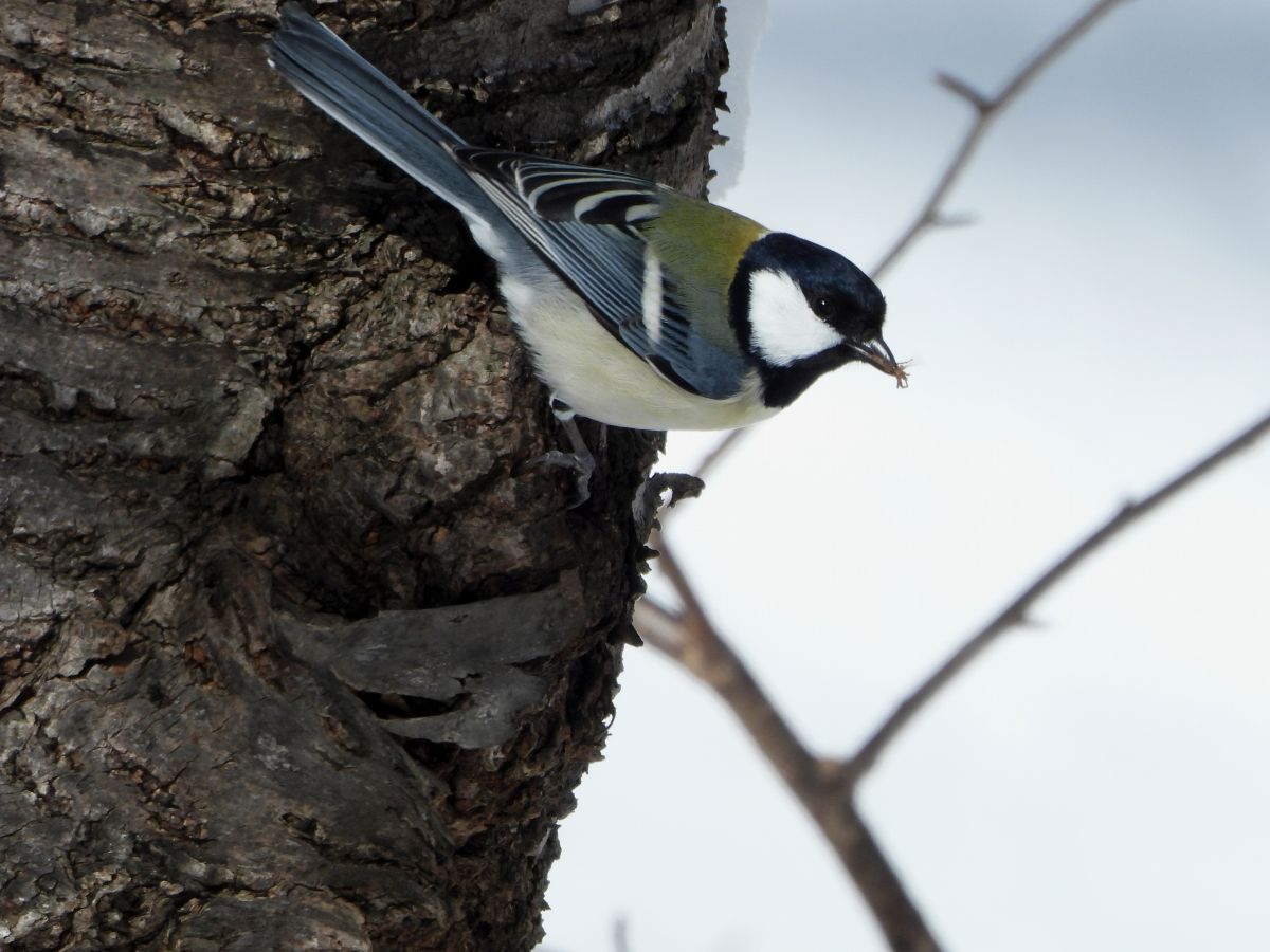 野鳥の数はあいかわらず少ないですが、シジュウカラが1羽のみ採餌をしていて、モデルをつとめてくれました。(写真1)