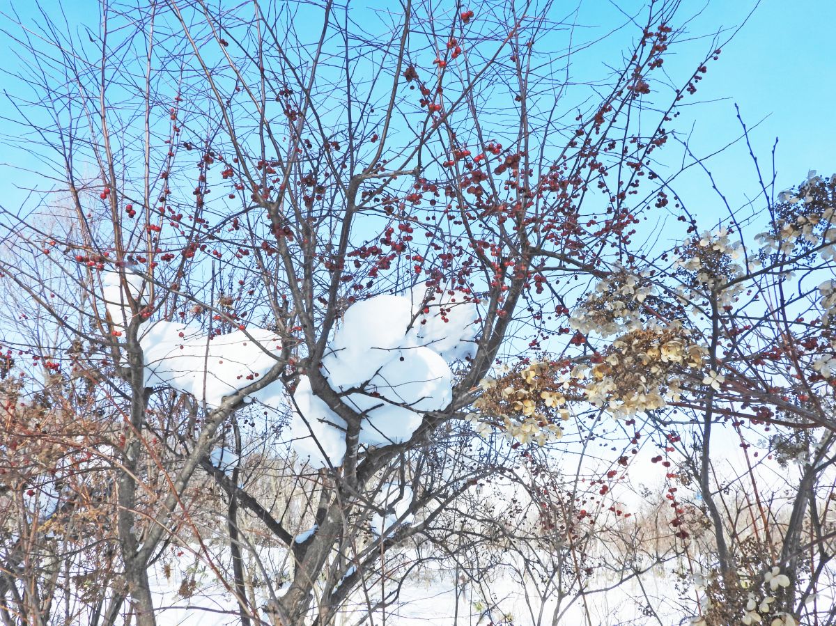 木々の枝には雪が載った状態ですが、暫くは全部が融けることはなさそうです。