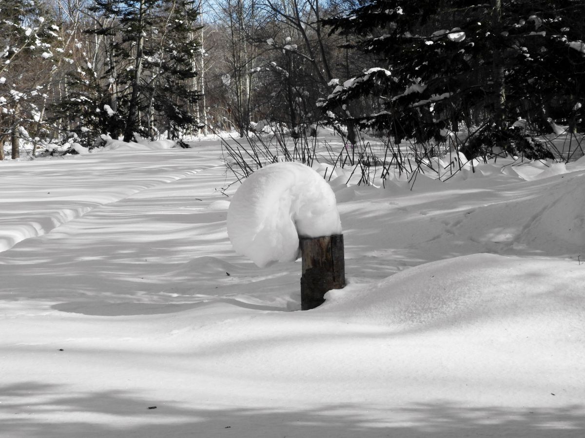 写真では雪に埋まっているように見えますが、起伏のある斜面で日光浴をしていたのかもしれません。