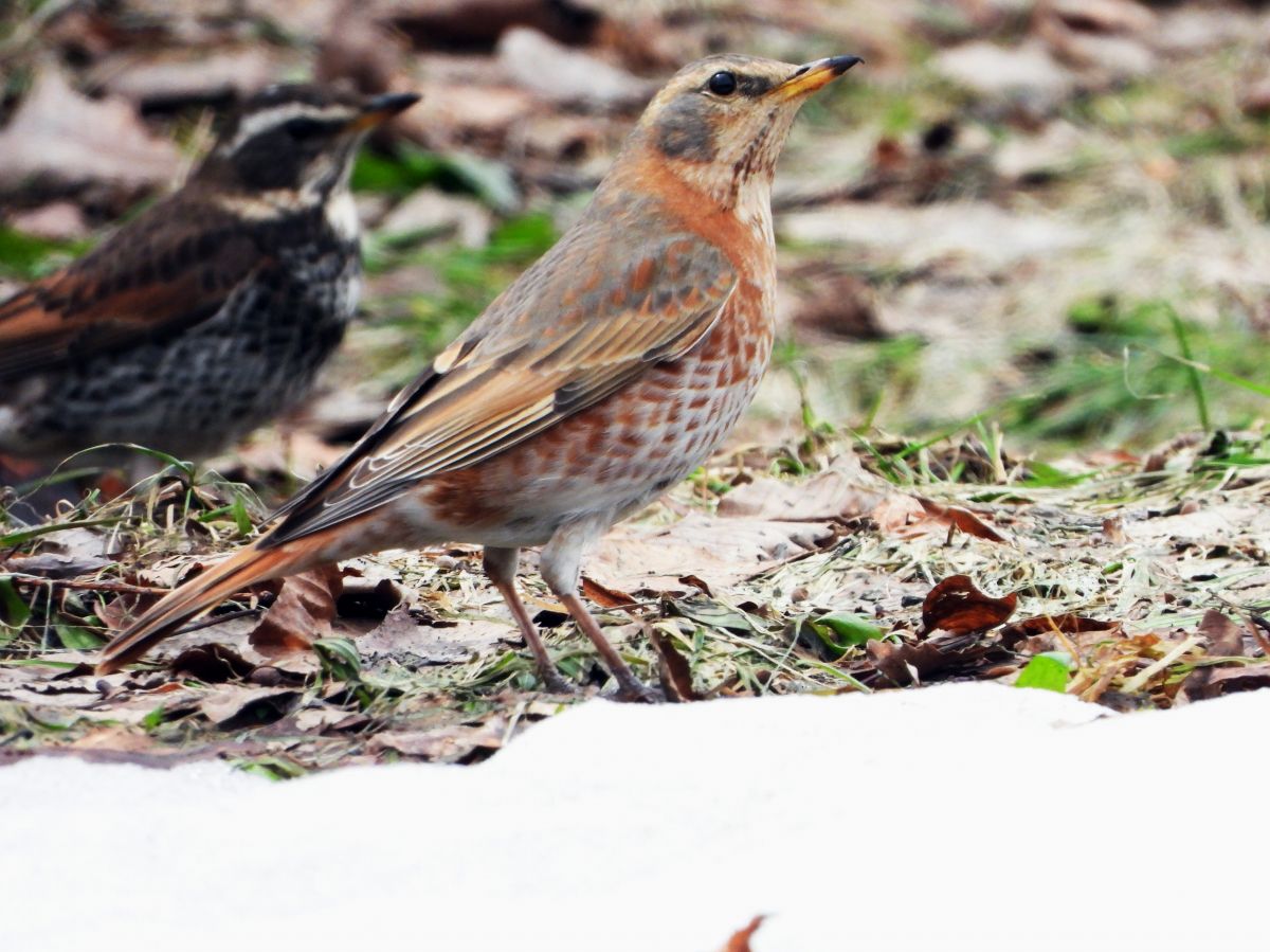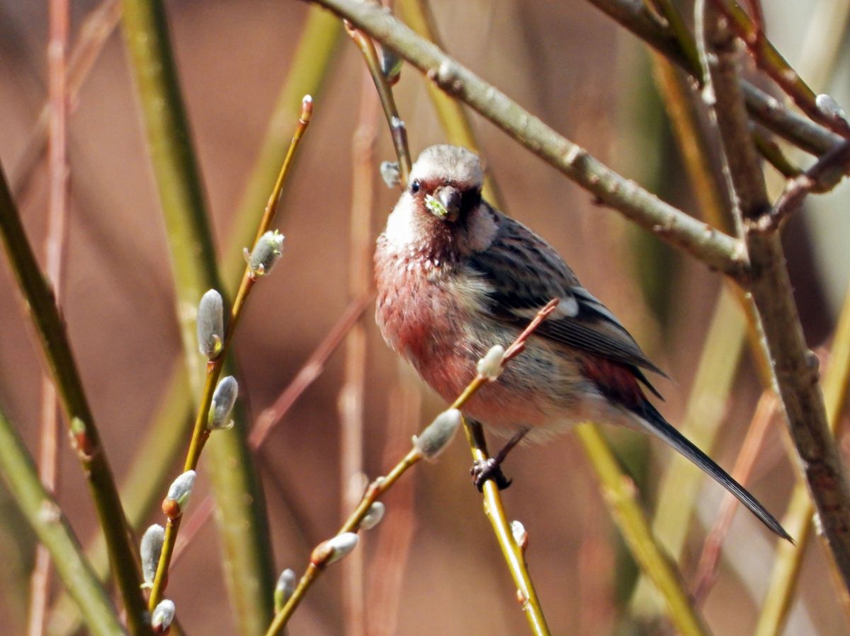 小さな群れで公園内を巡回している感じで、短時間だけ斜面の梅林で採餌を行い、すぐに飛び立って暫くしてまた訪れるという感じでした。