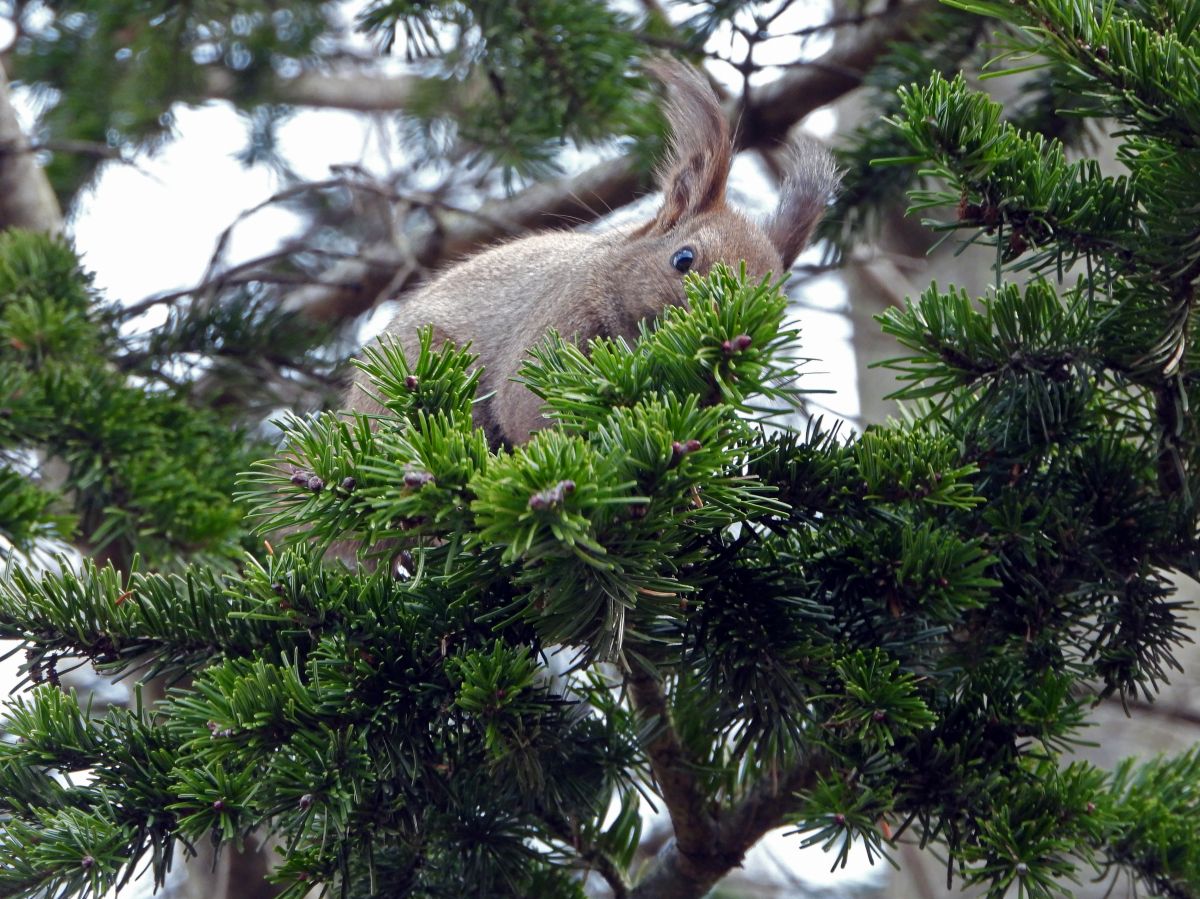 エゾリスを撮影しましたが、撮影条件が悪かったので、綺麗な写真にはなりませんでした。(写真5)