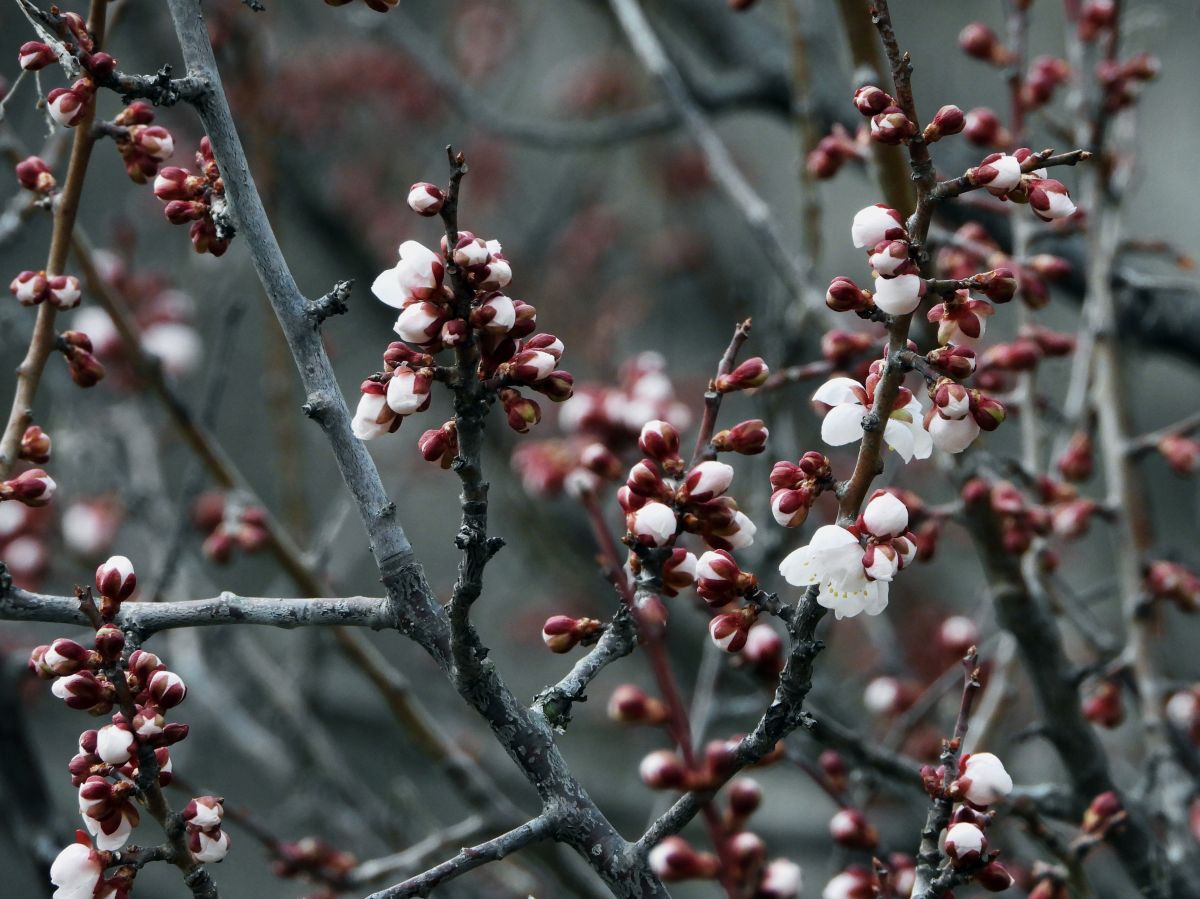 梅は、陽当たりの良い場所ではほぼ満開になりました。