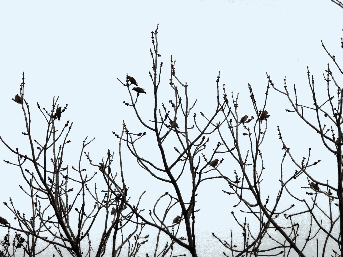 今回は尾羽が紅色の緋連雀のみですが、たまに尾羽が黄色のキレンジャク(黄連雀)も姿を見せます。