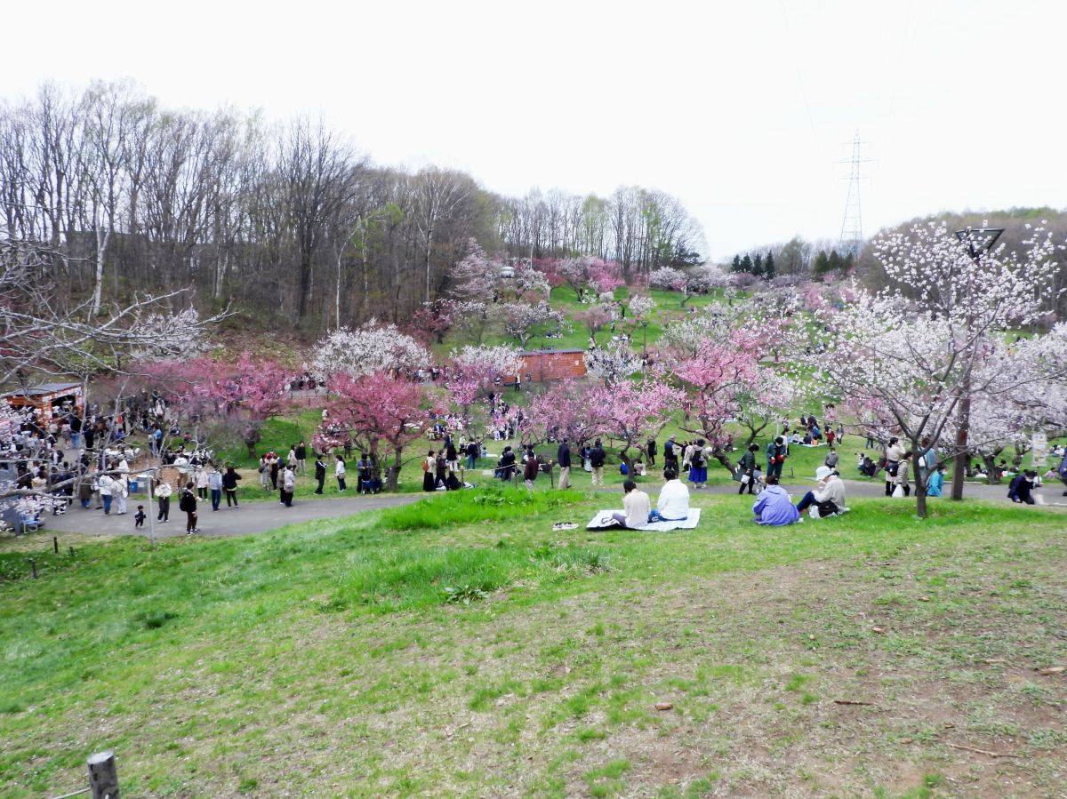 本日は祭日で絶好のお花見日和となりましたので、たくさんの見物客が平岡公園の梅園を訪れていました。