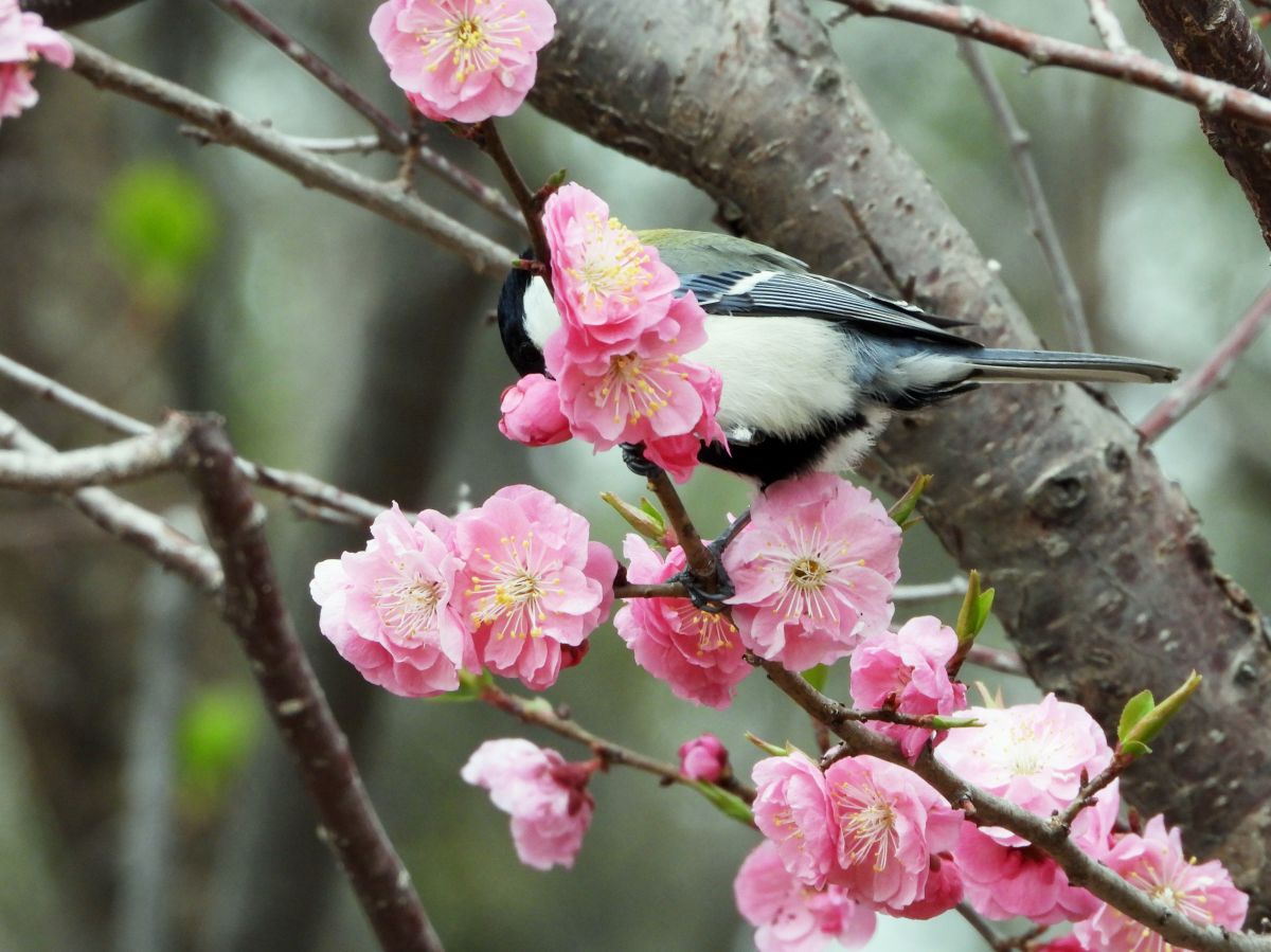 紅梅とシジュウカラです。