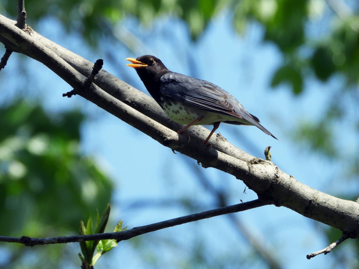 撮影をするには、たまに低い枝に降りてきたときに、偶然そこに居合わせる幸運が必要です。
