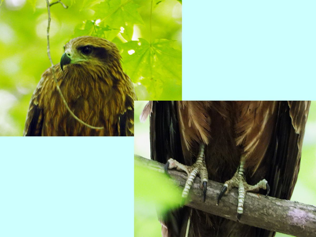 その後、林の中の遊歩道で、トビを撮影しました。(写真8,9)