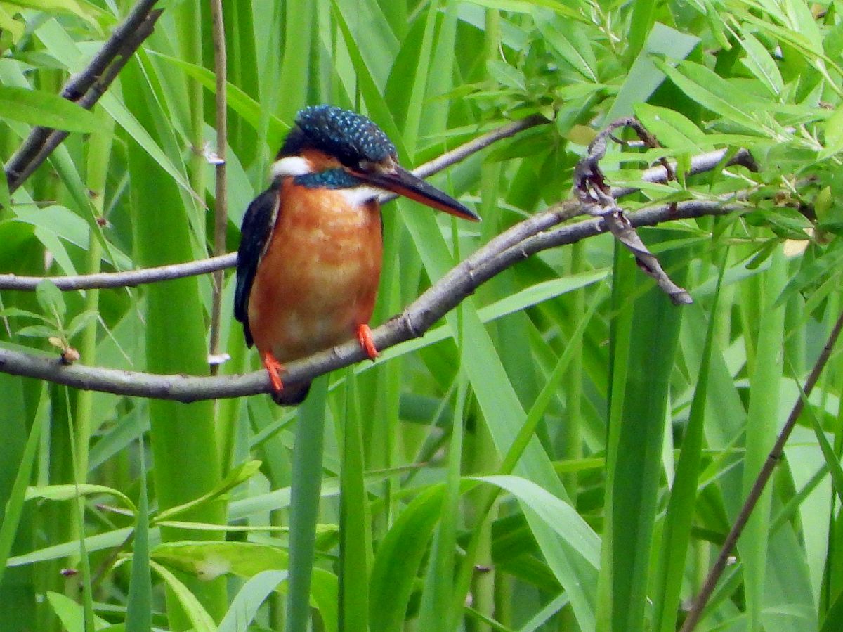 かなり待機した後、カワセミが飛来しましたが、撮影に最適な中島にはとまってくれませんでした。
