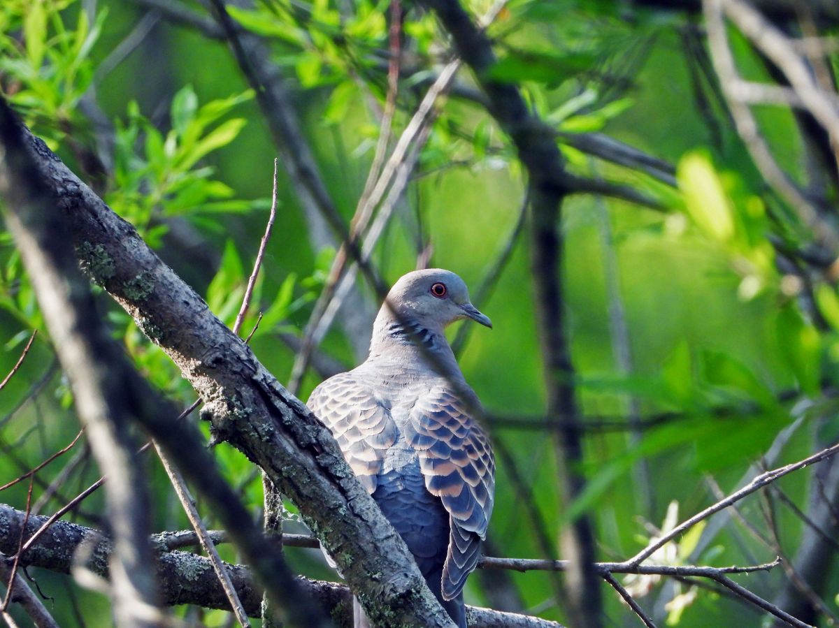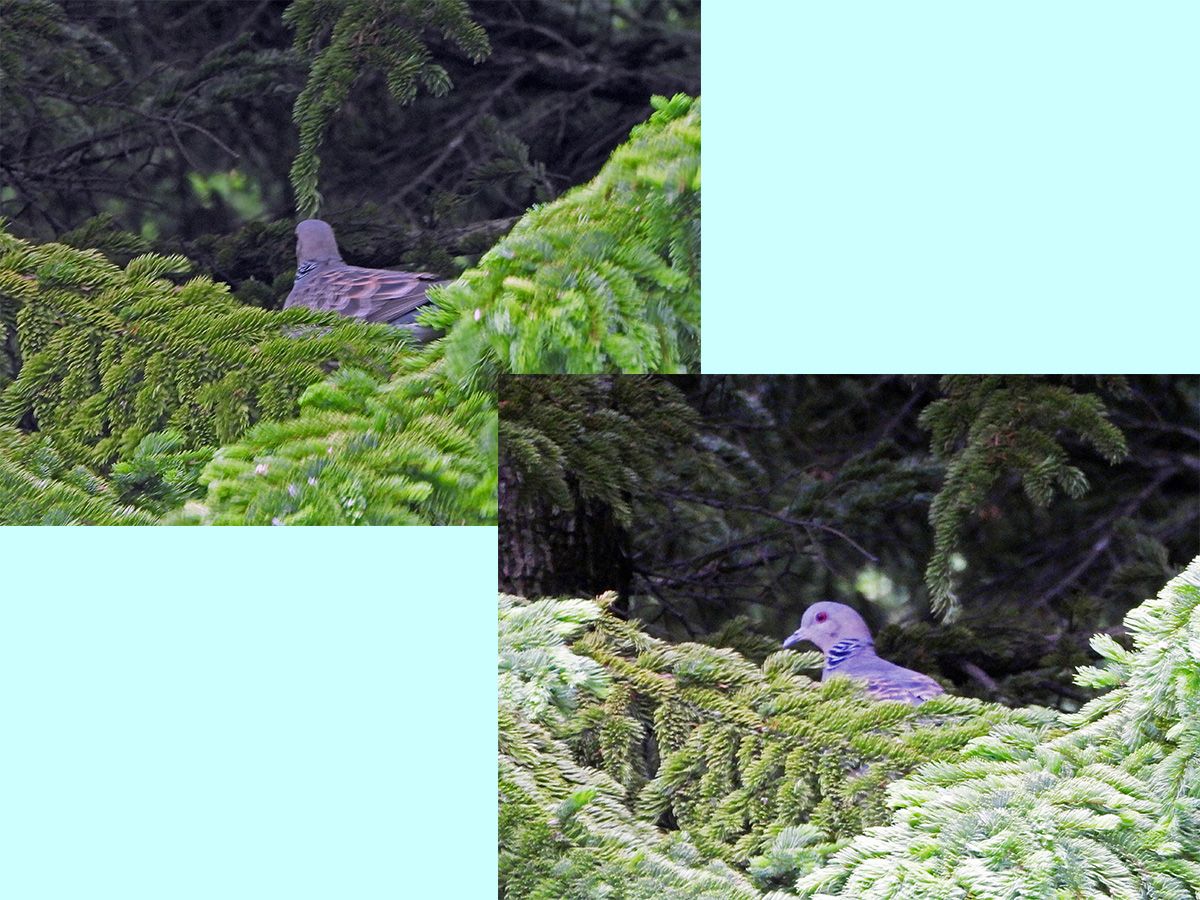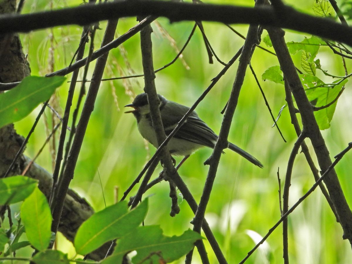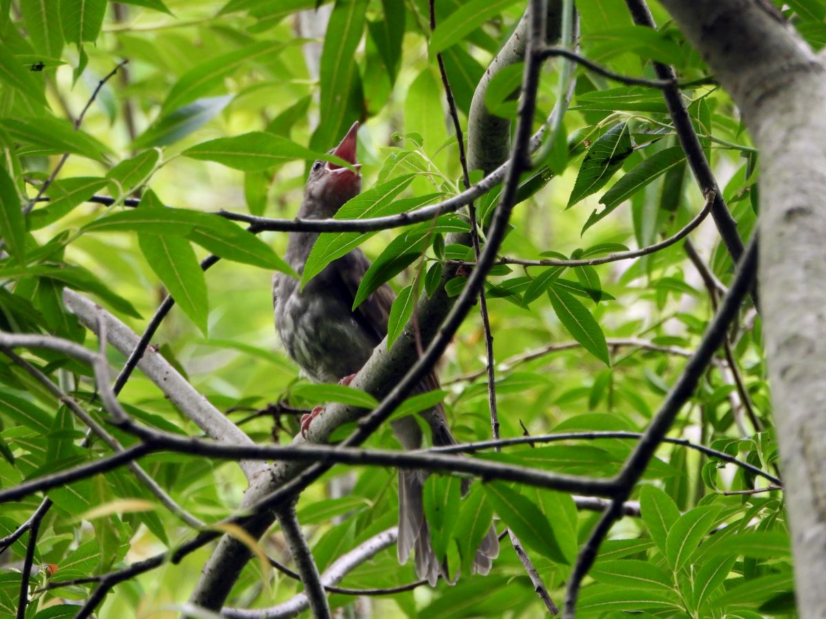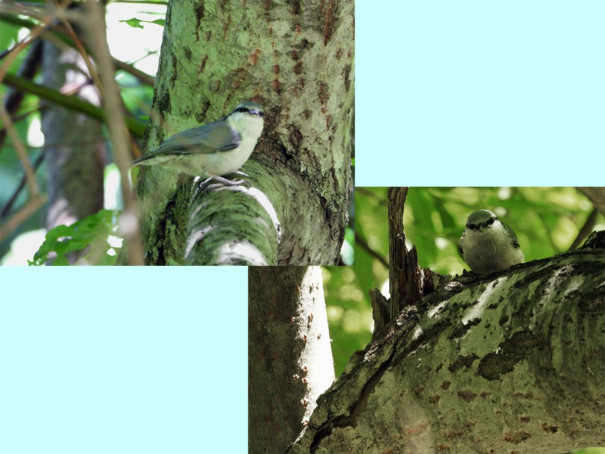 今日も、成鳥と幼鳥が人工池周りの木々を訪れていました。(写真1〜4)