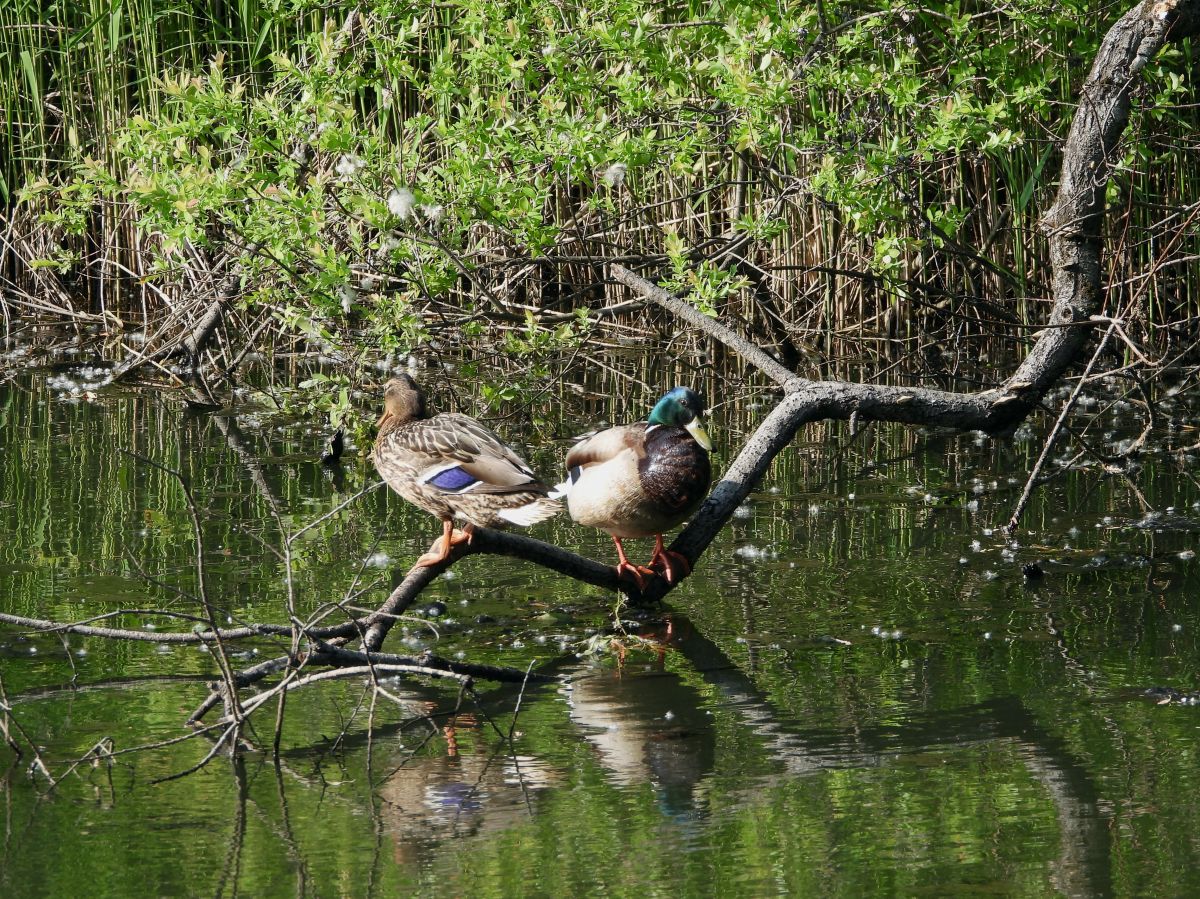 写真4、親子が並んでとまっている様子ですが、手前側が親鳥です。