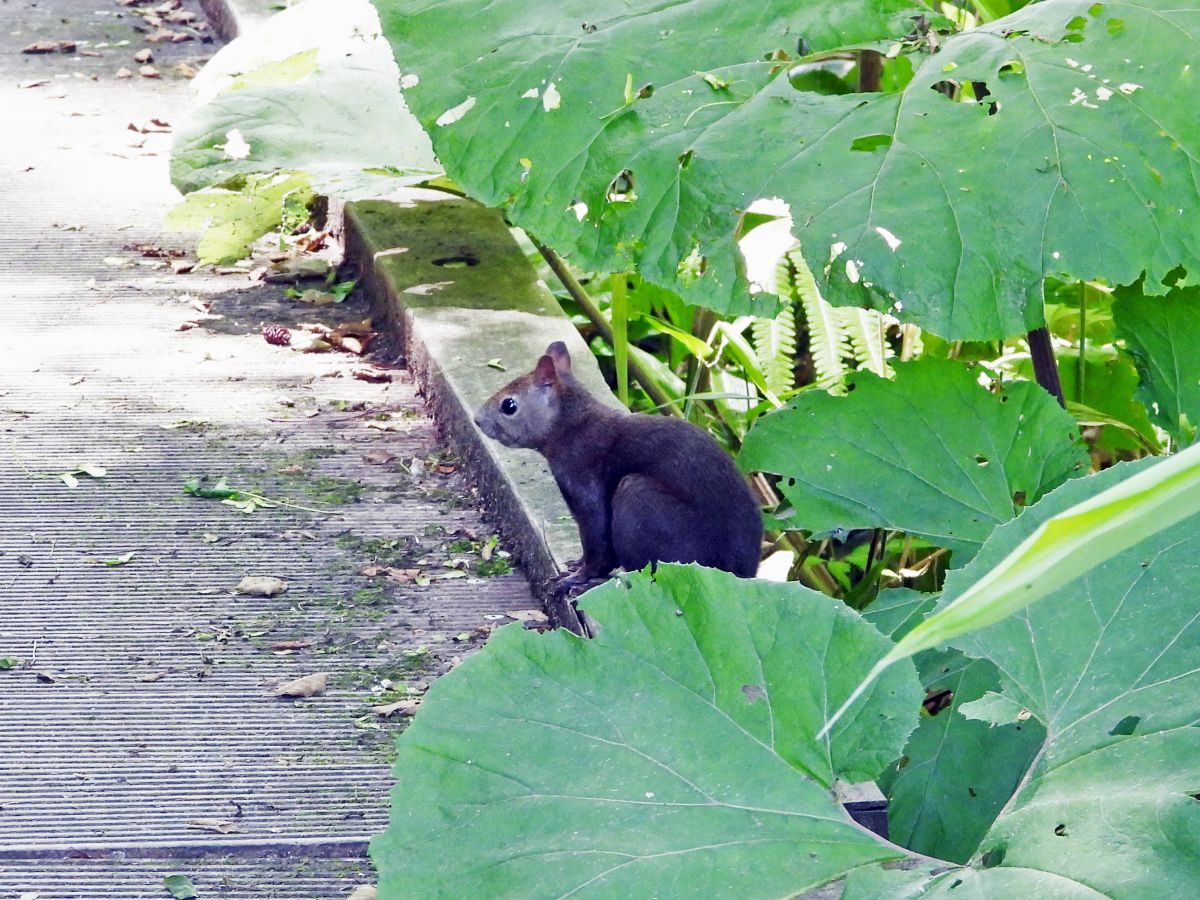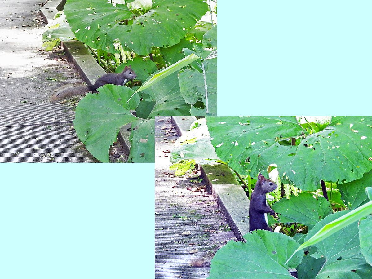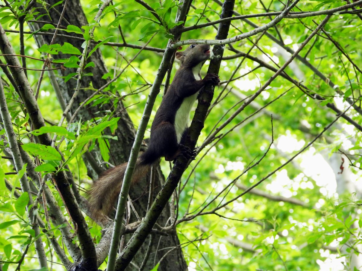 林の中の遊歩道で、エゾリスを撮影しました。(写真6〜9)。