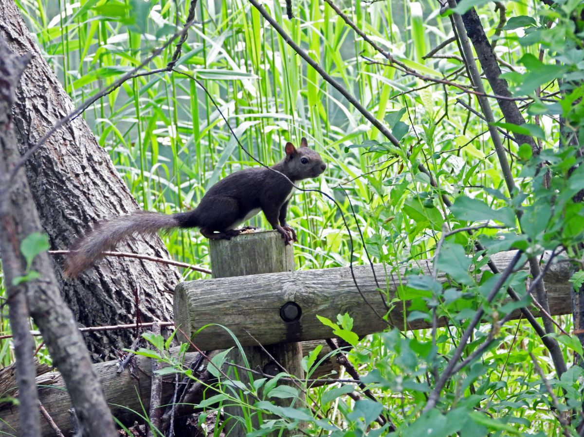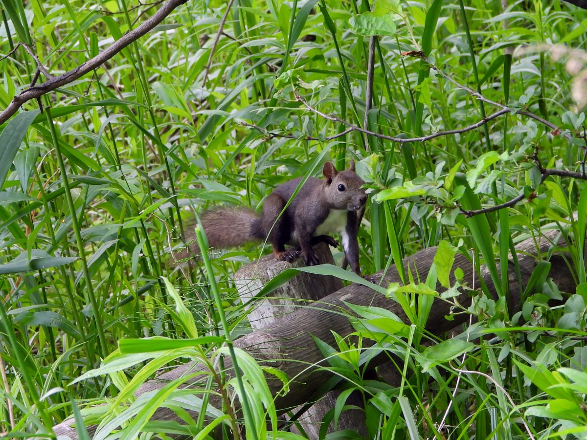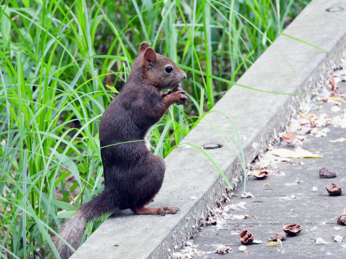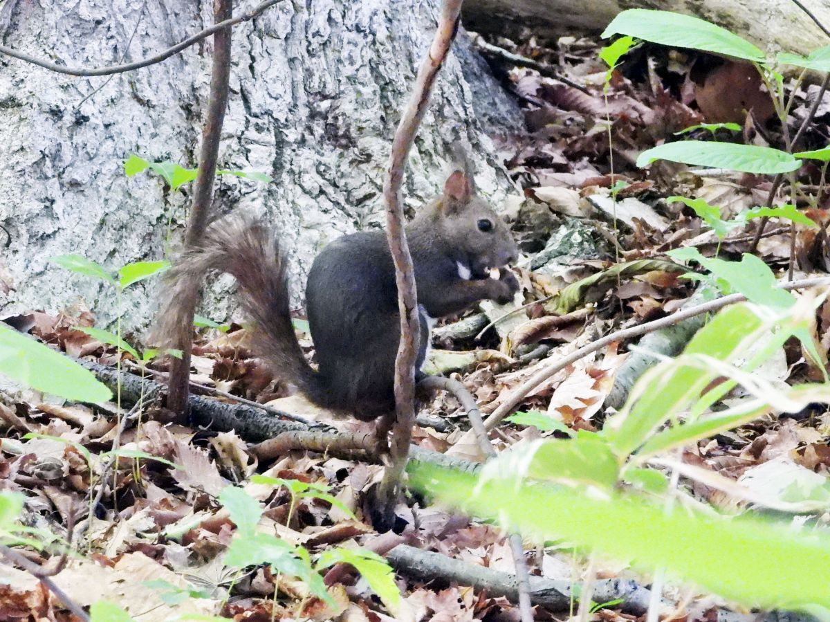 林の中の遊歩道で、エゾリスを撮影しました。(写真6〜9)。