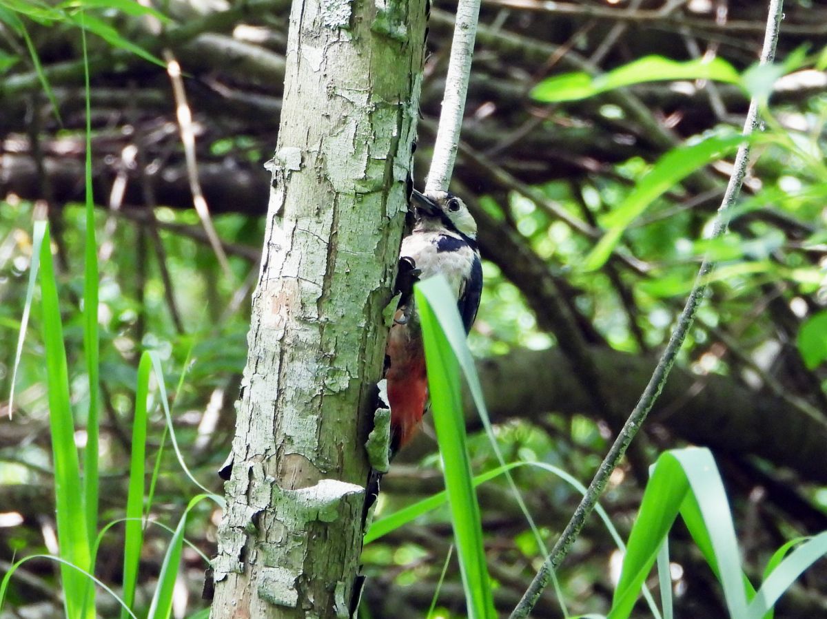 湿原でアカゲラを撮影しましたが、主に地面に降りて採餌をしていたので、撮影には手こずりました。(写真4)