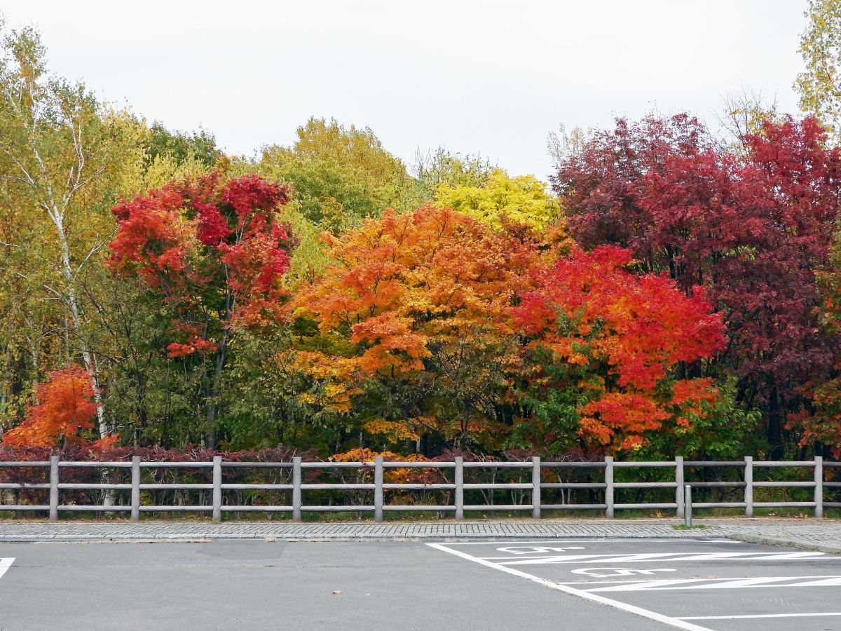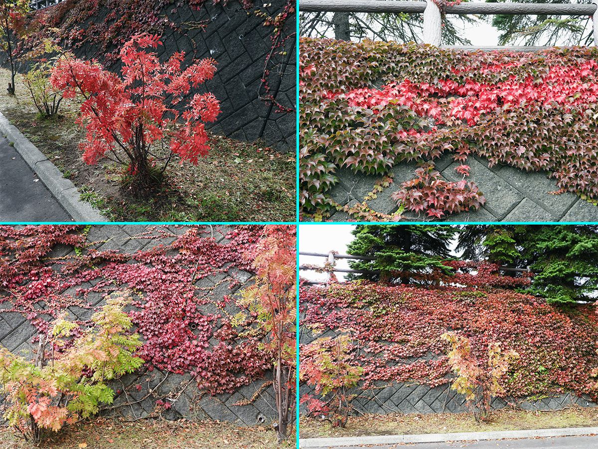 第一駐車場の道路側側壁のツタ類が最盛期を迎えています。(写真4)