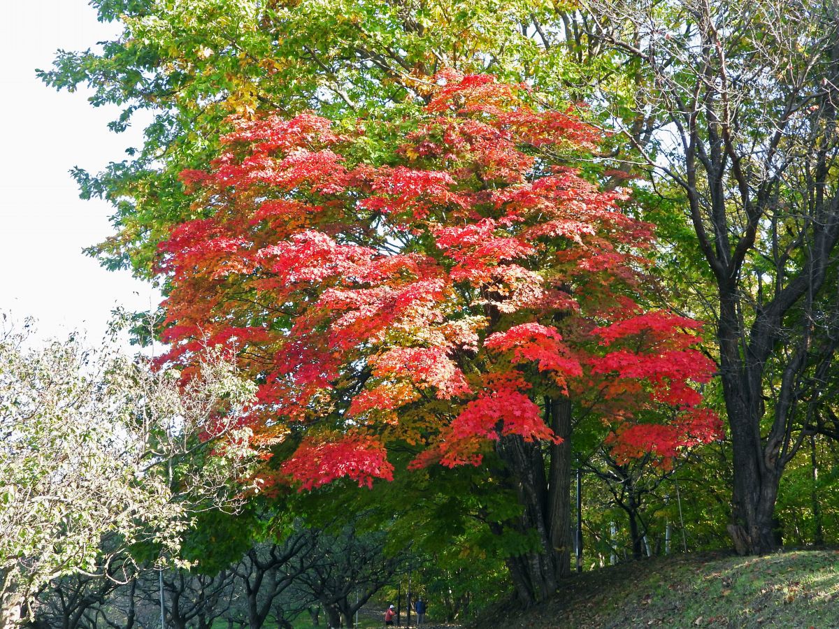 深紅のモミジが少ない公園ですが、黄葉はとても綺麗です。(写真2,3)