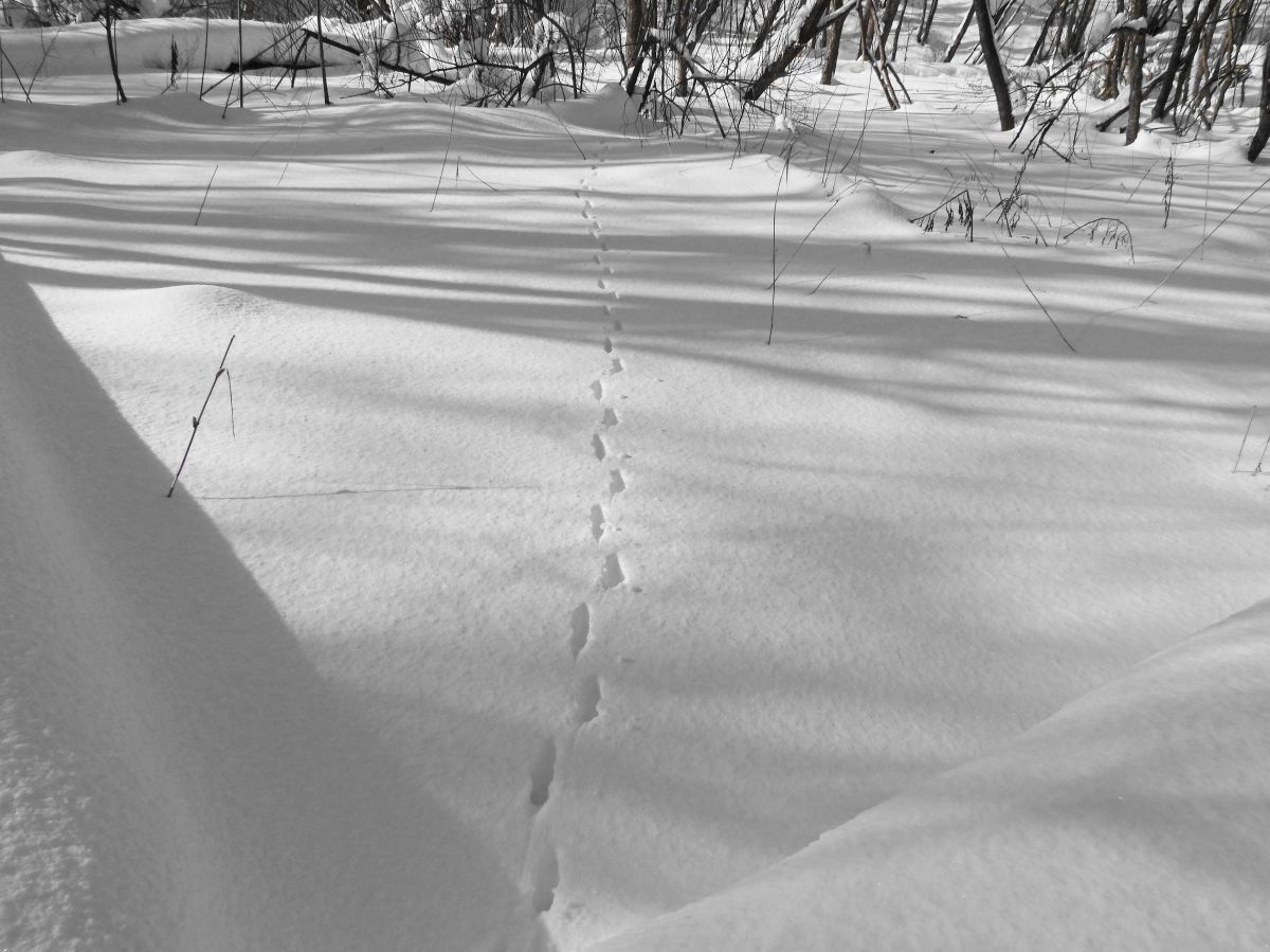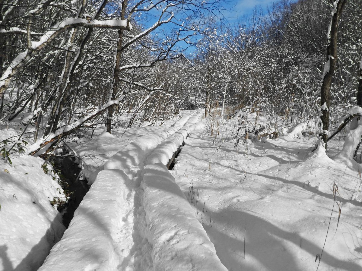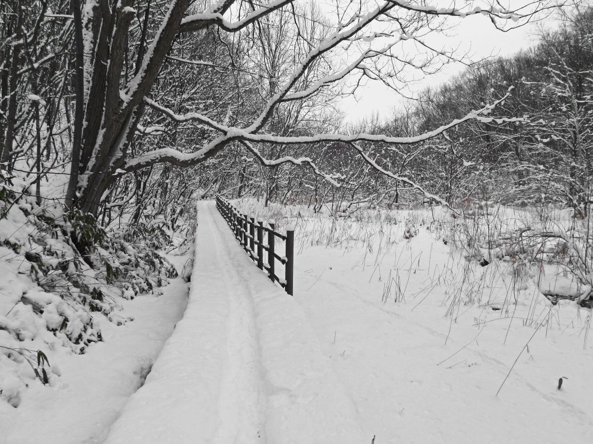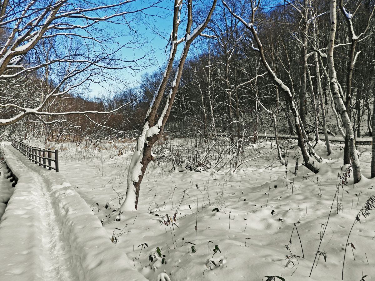 雪が深くなかったので、一応湿原の木道を1/4程度歩いてみました。(写真8,9)