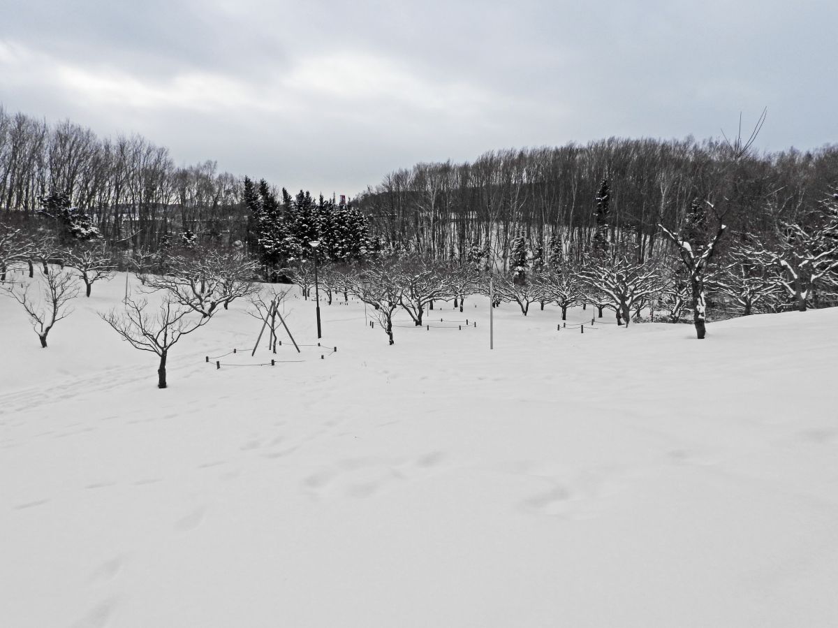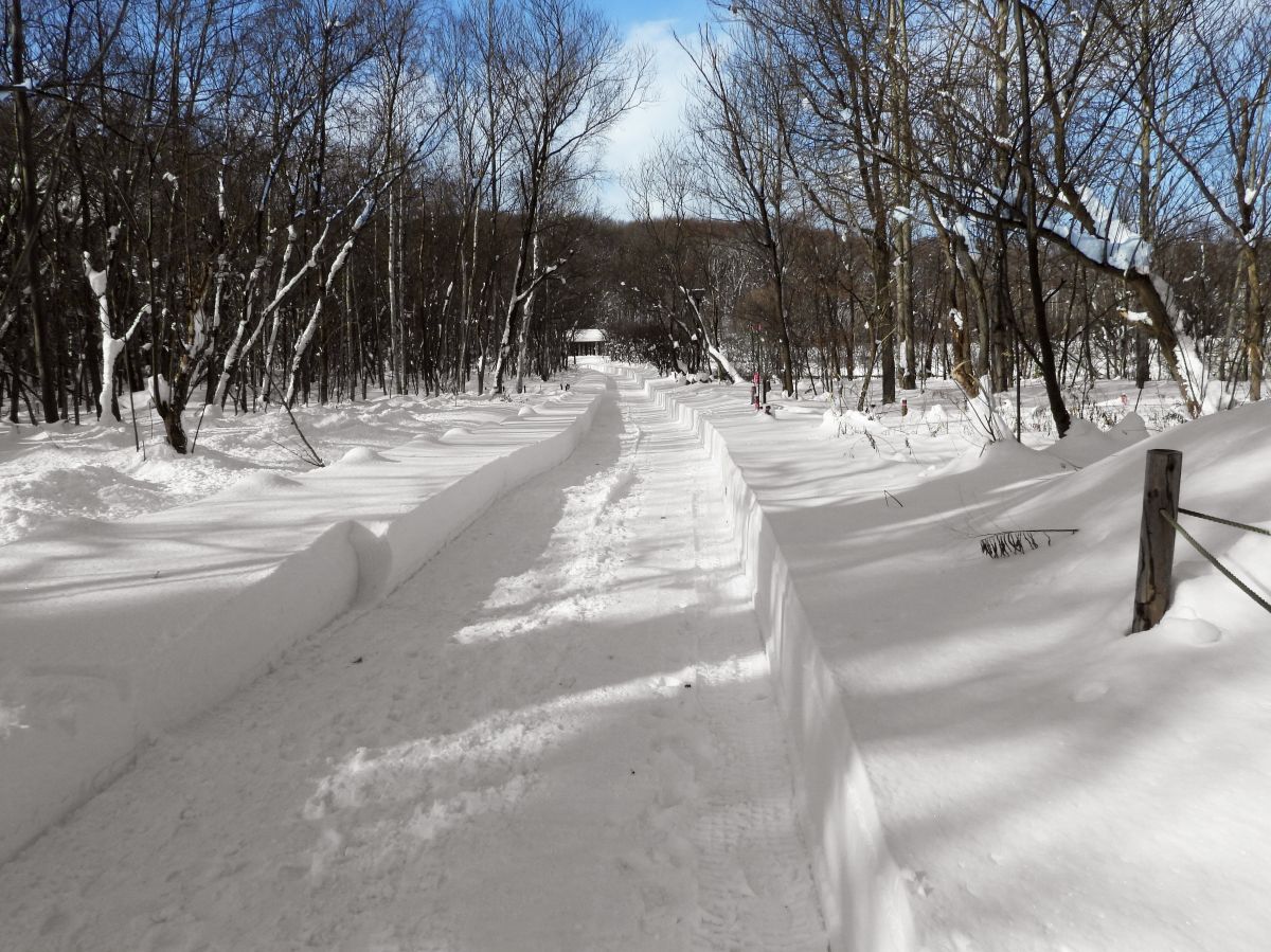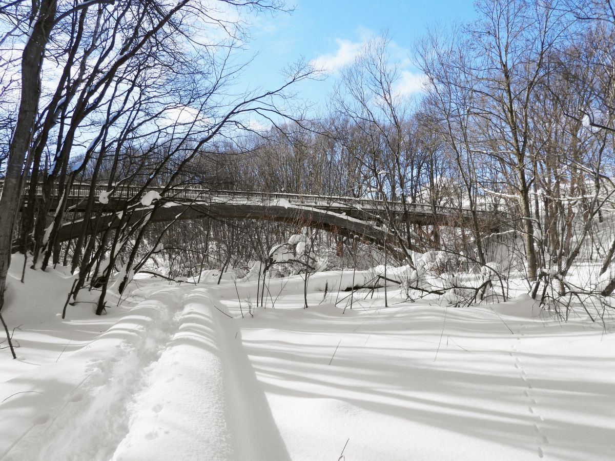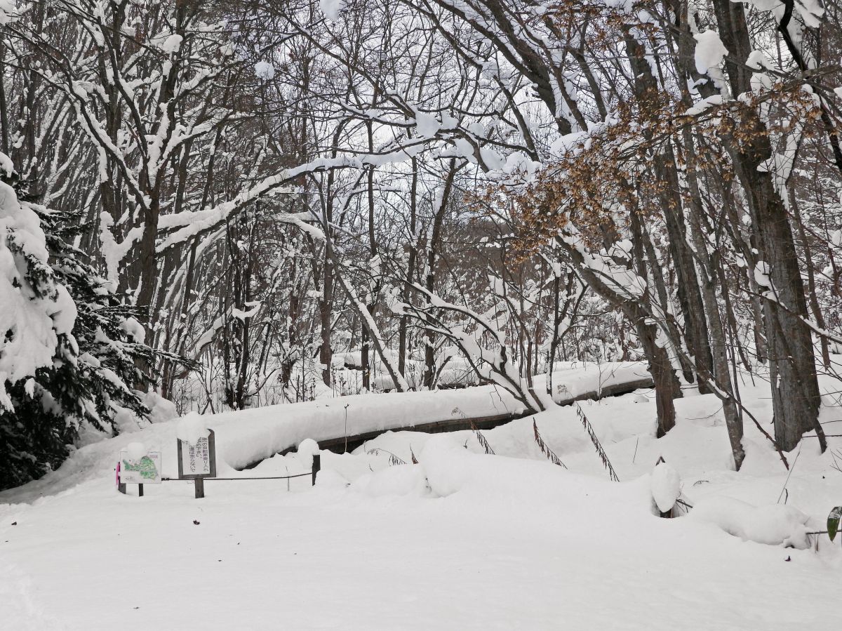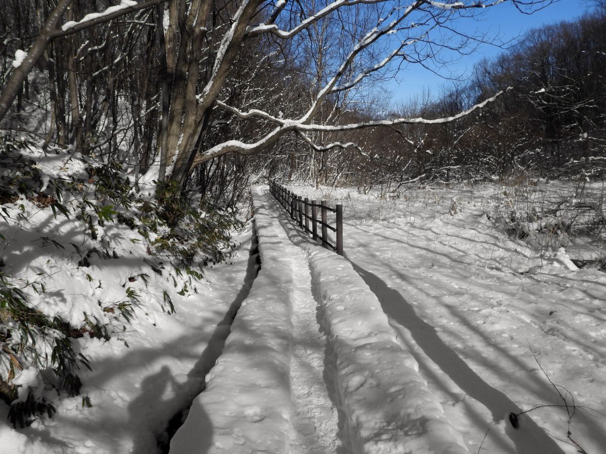 暴風雪が収まった直後なので、平岡公園の踏み跡もほとんどない状態でした。