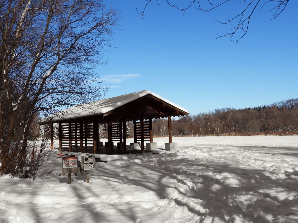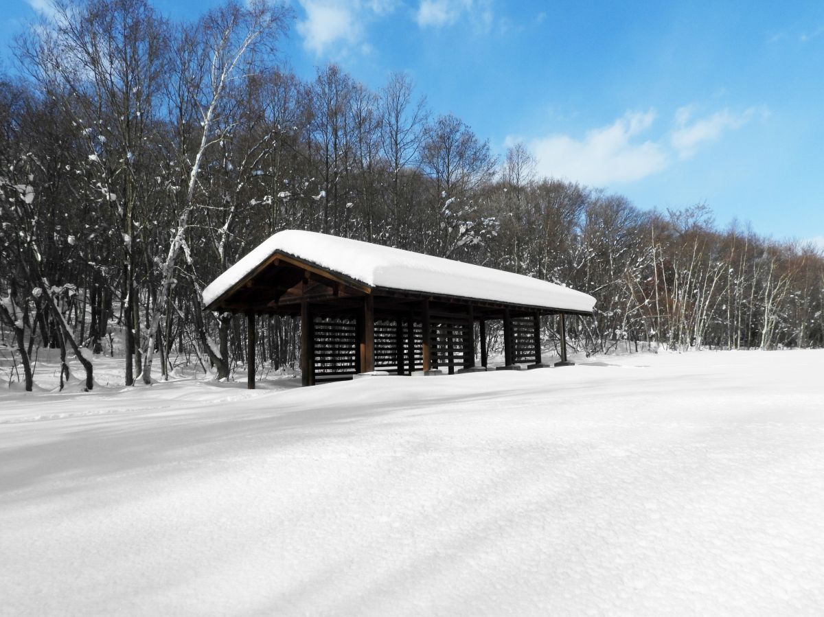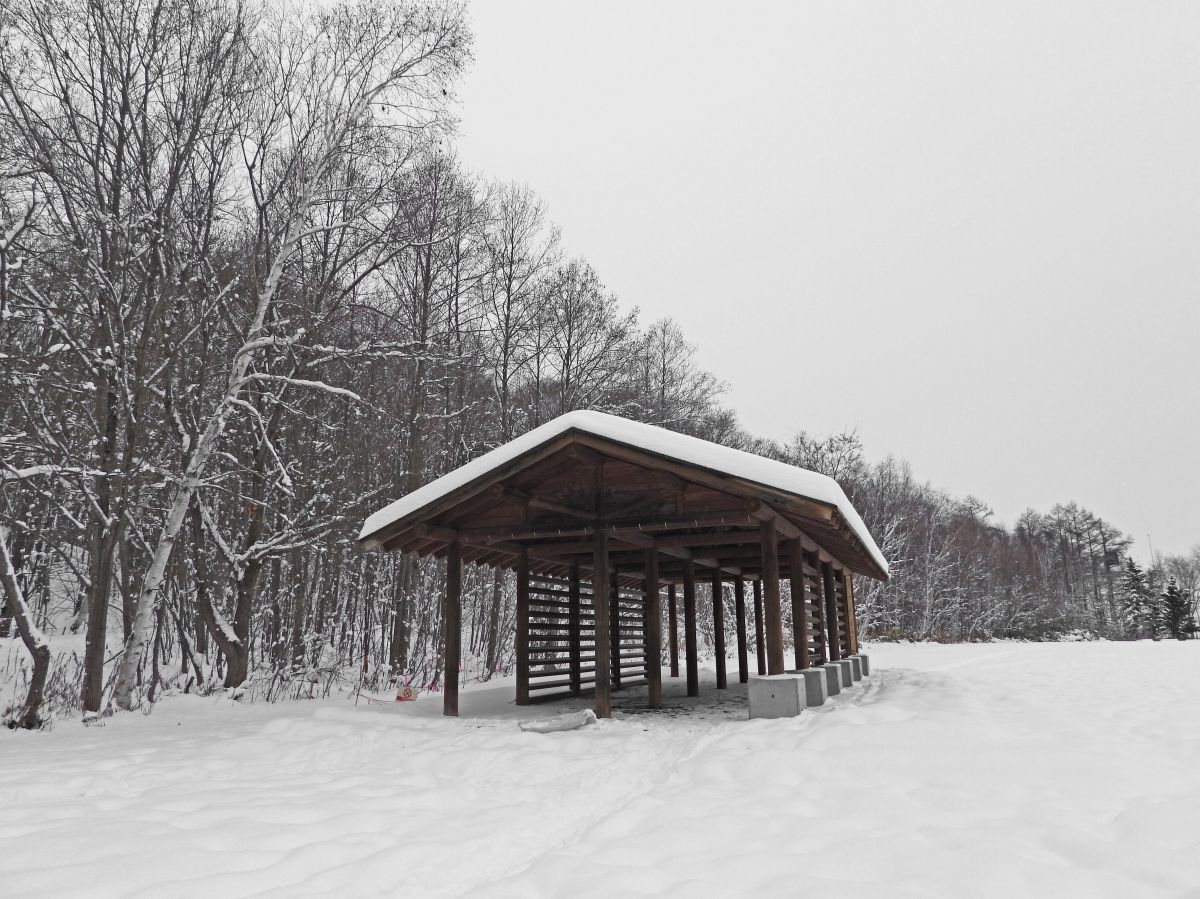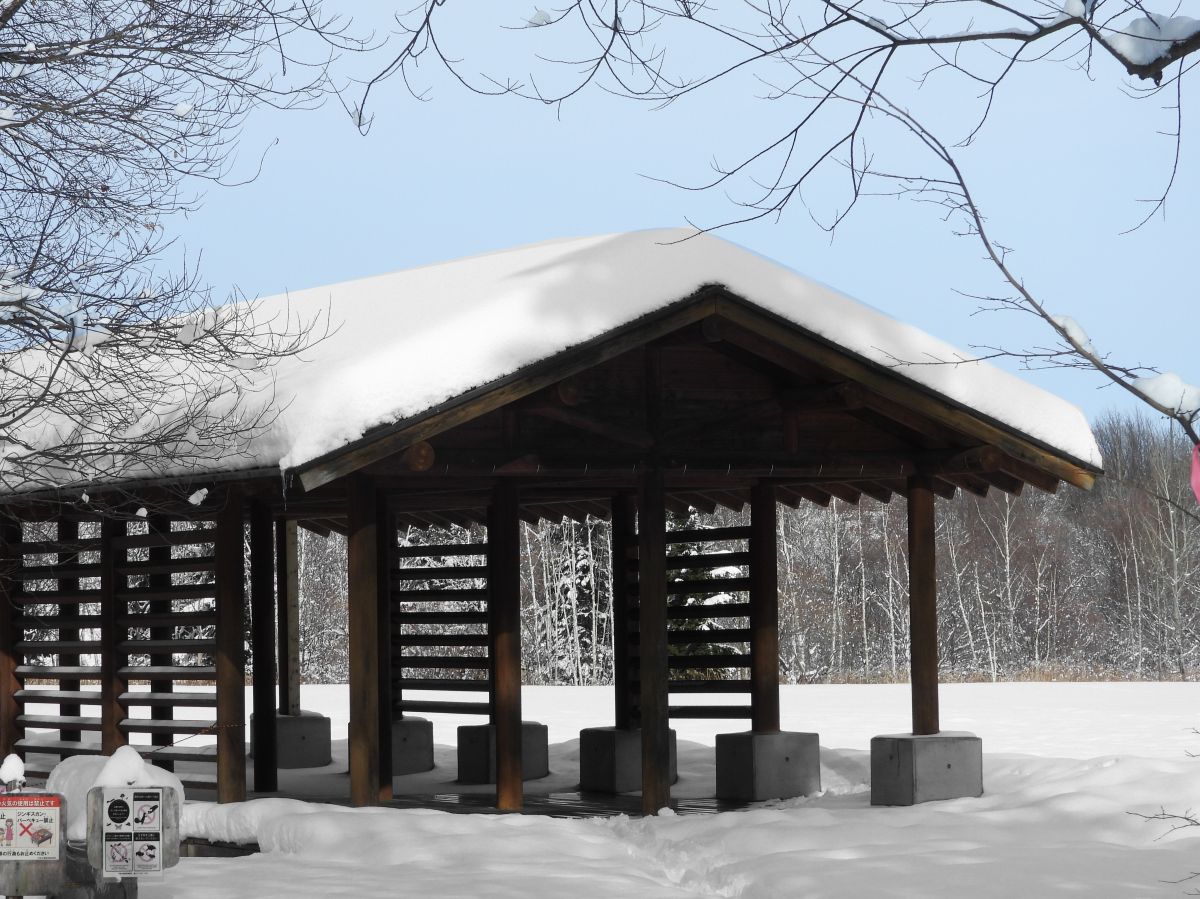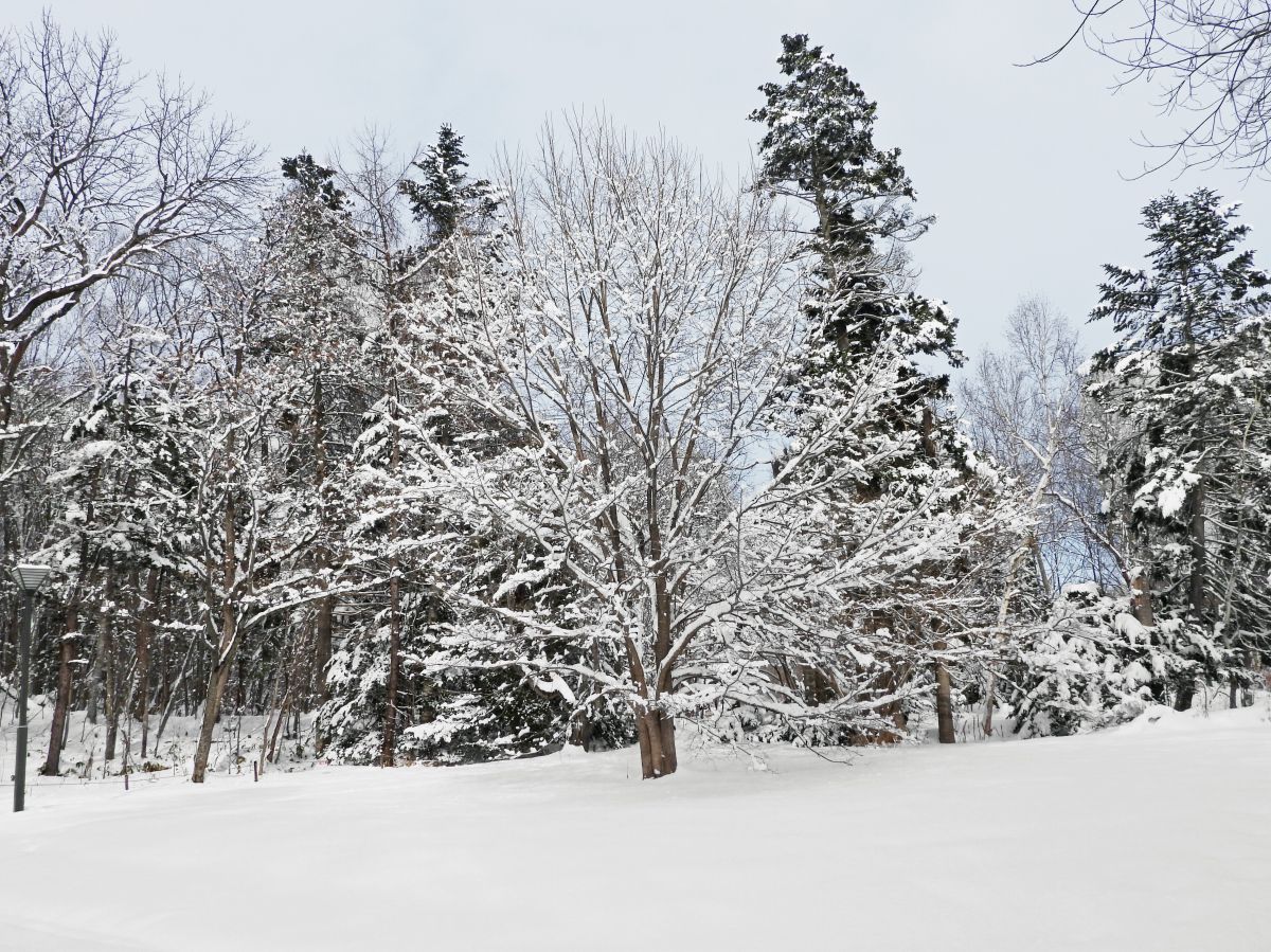 暴風雪が収まった直後なので、平岡公園の踏み跡もほとんどない状態でした。