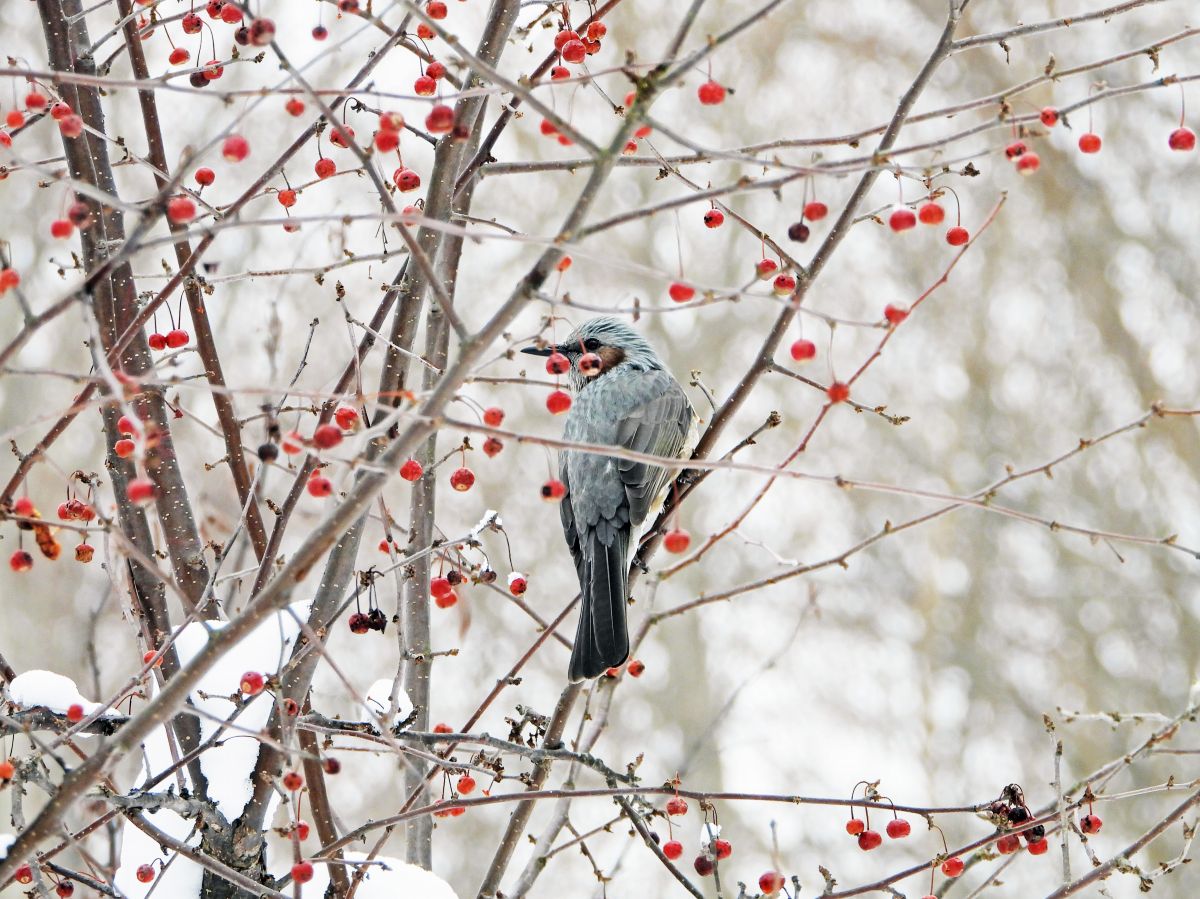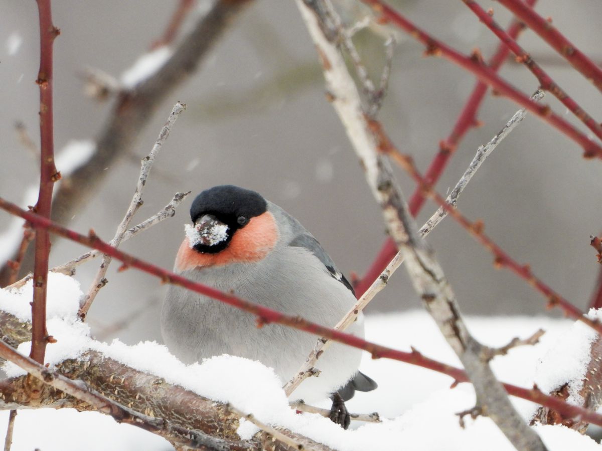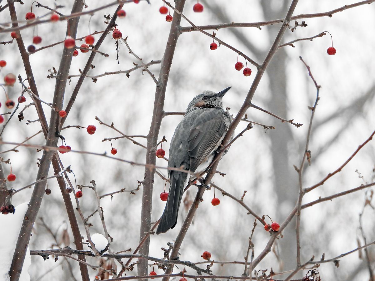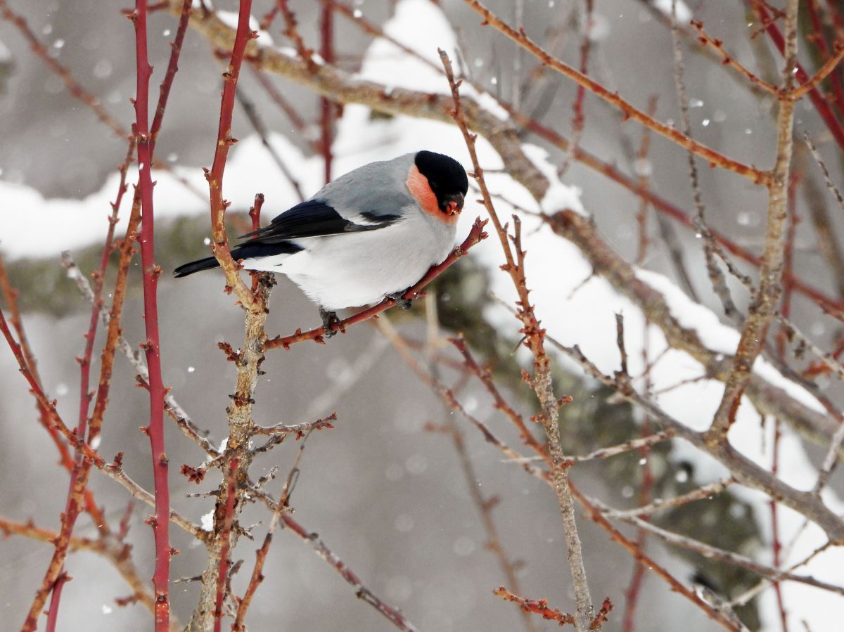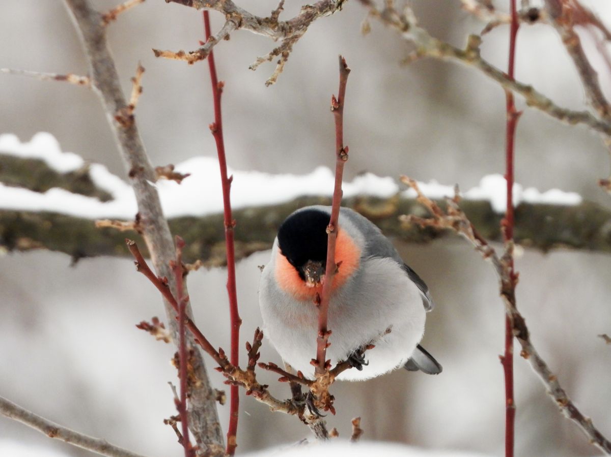 雪景色ばかりでは味気ないので、22日に撮影したウソの写真をアップしました。(写真1〜3)