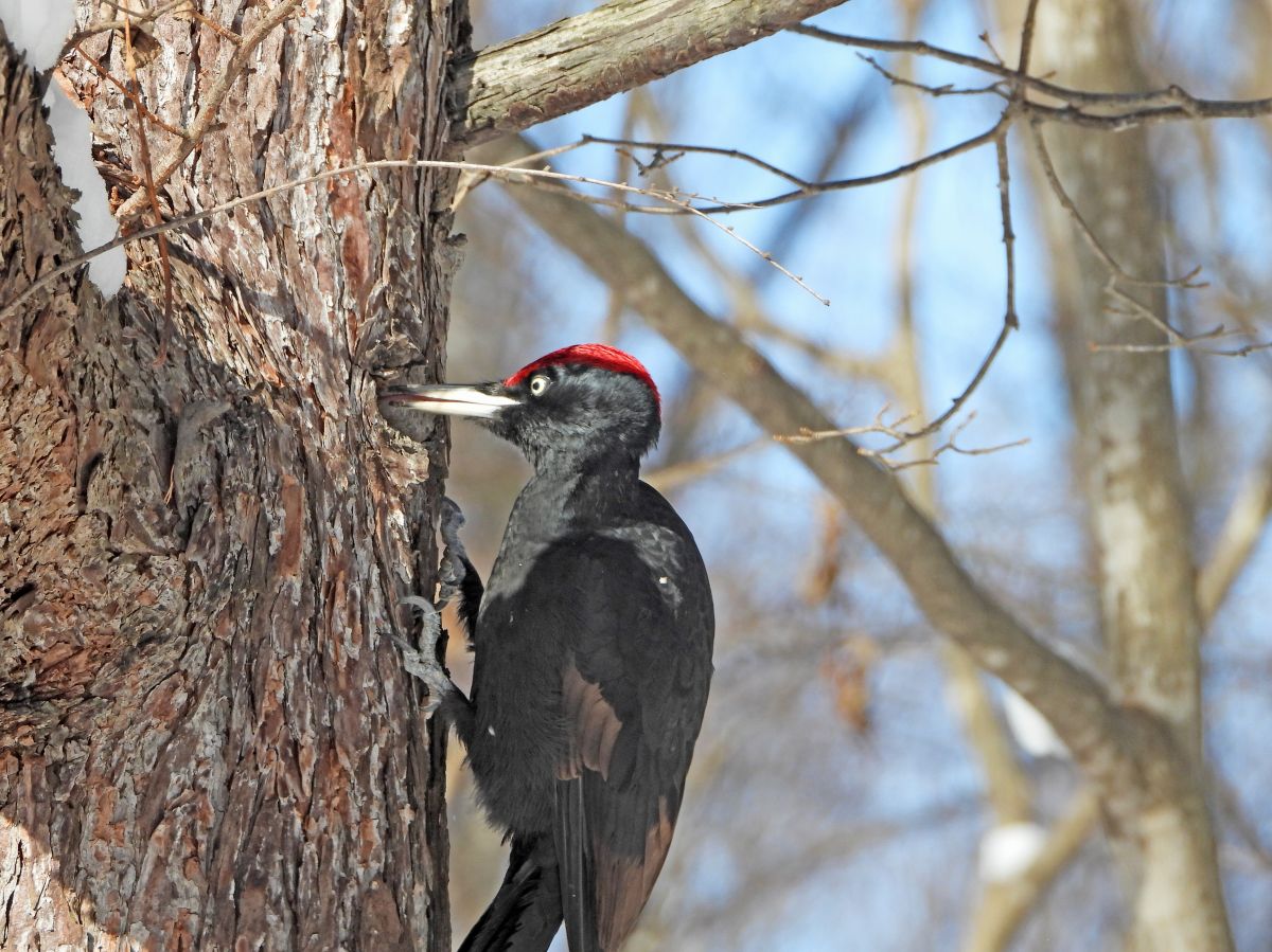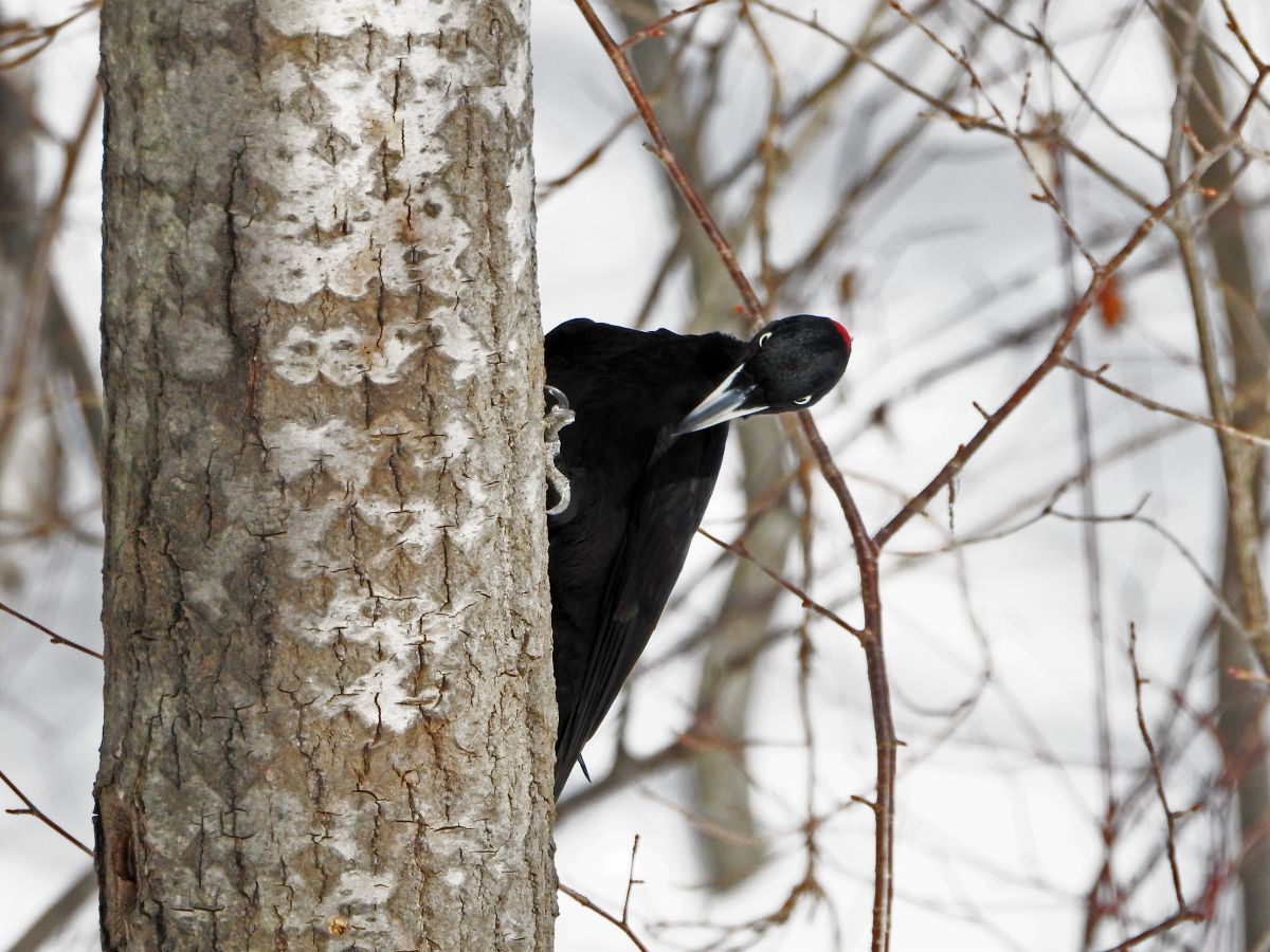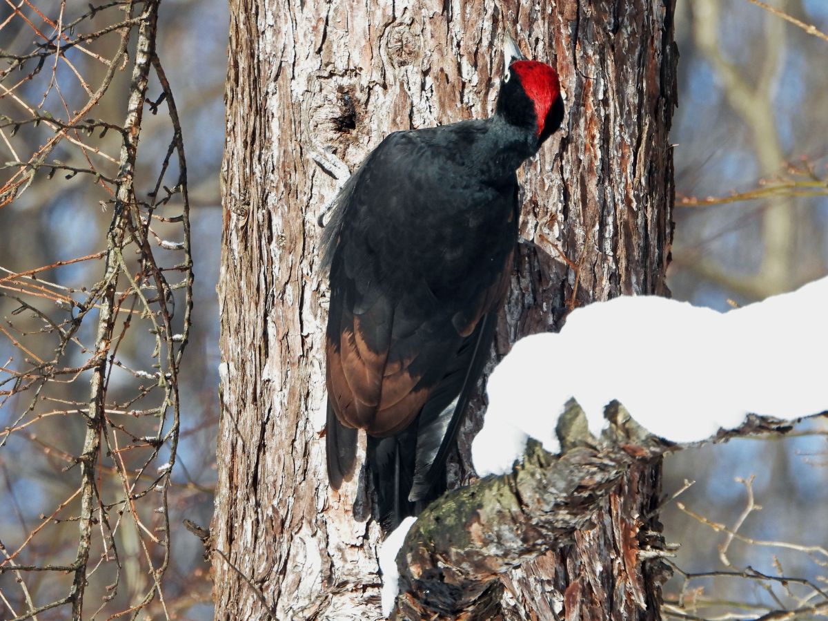 前回のクマゲラは雄でしたが、今日のクマゲラは雌でした。