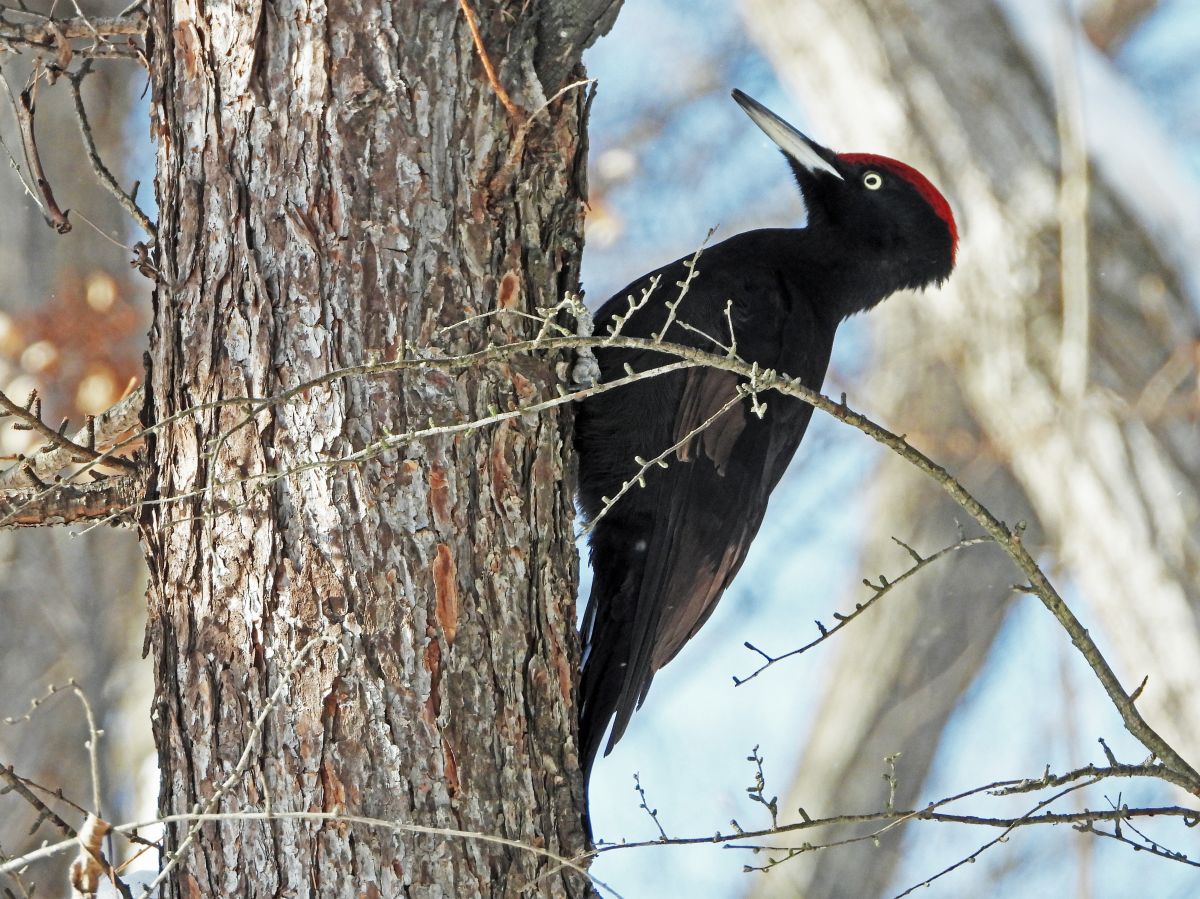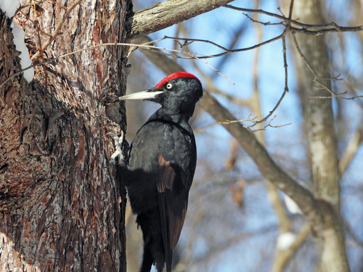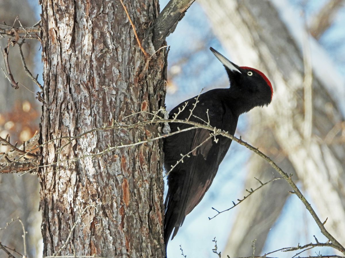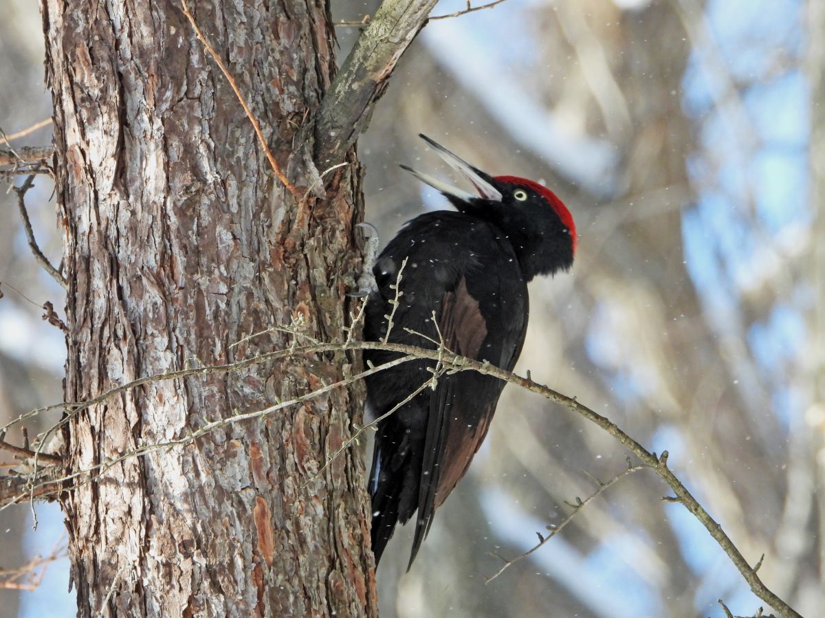 前回のクマゲラは雄でしたが、今日のクマゲラは雌でした。