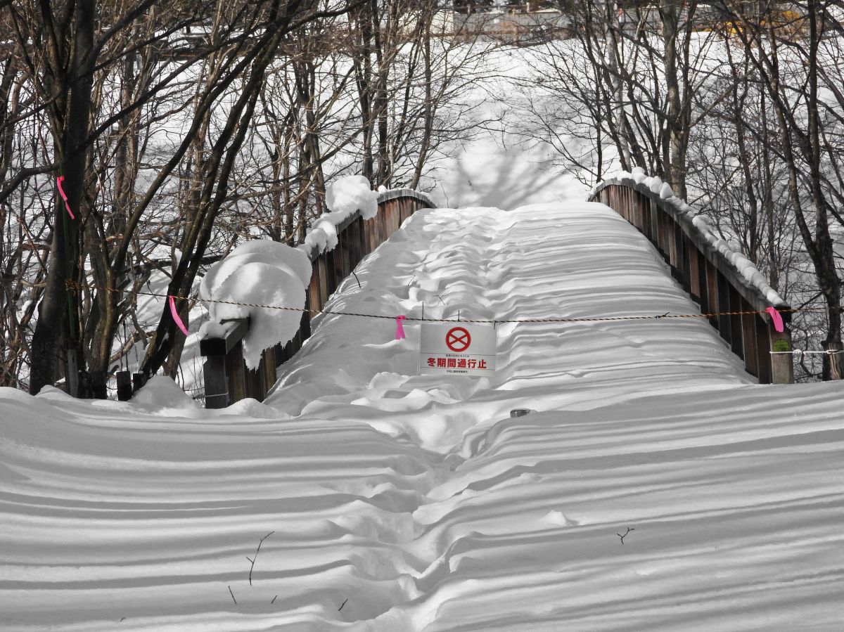 橋の積雪が増えたら安全のために毎年通行止めになり、春に橋の床板が露出すると再開されます。