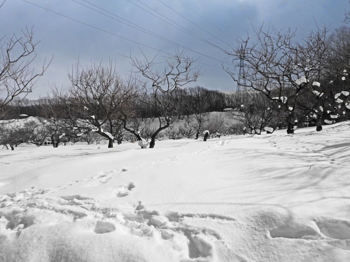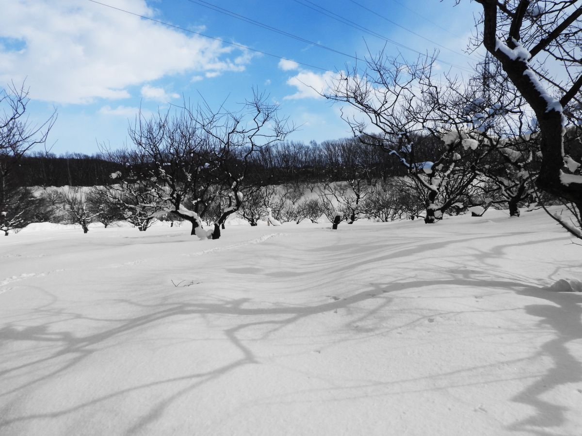 積雪は表面が硬くなってきて、長靴でも埋まらないで歩けるようになってきました。