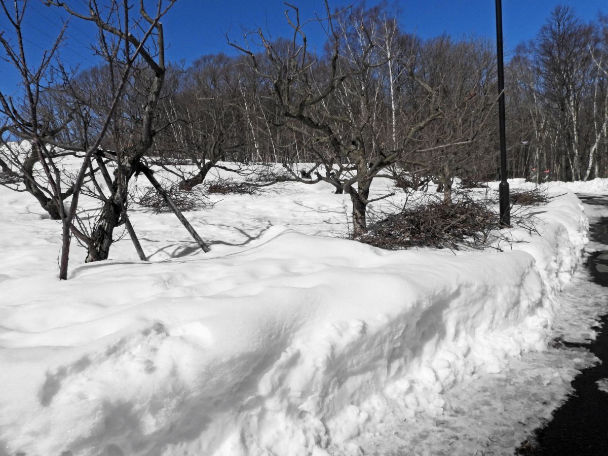 明日から月末までの天気予報では、最高気温が29日+12℃、30日+11℃、31日+8℃なっているので、急速に融雪が進むと思われます。