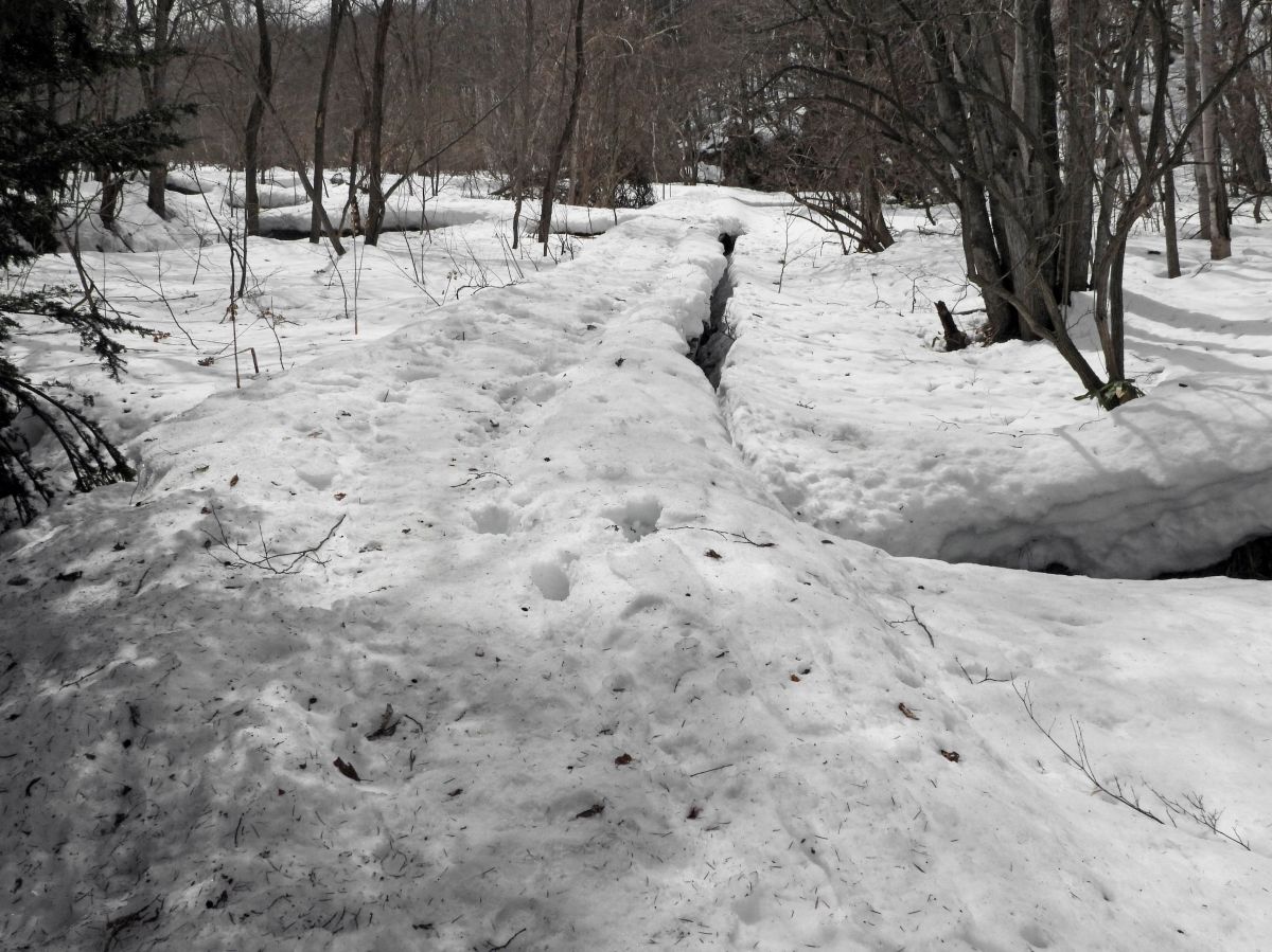 踏み抜きが頻発するために、歩くのが大変な範囲がありました。(写真9)